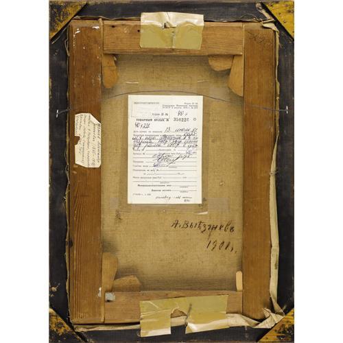 <B>ALEXANDER NIKOLAYEVICH VIEZZHEV</B></I> (Russian-Ukranian 1865-1918)<BR><I>Portrait Of A Man,</B></I> 1901<BR>Oil on canvas<BR>17 x 11-1/2 inches (43.2 x 29.2 cm)<BR>Signed and dated verso, Cyrillic<BR><BR> <B>Condition Report:</B> excellent condition, unlined, minor abrasion to surface in far margin of lower left side (from frame)<BR><BR><b>Shipping:</b> Requires 3rd Party Shipping (<a target="_blank" href="http://www.heritageauctions.com/common/shipping.php">view shipping information</a>)