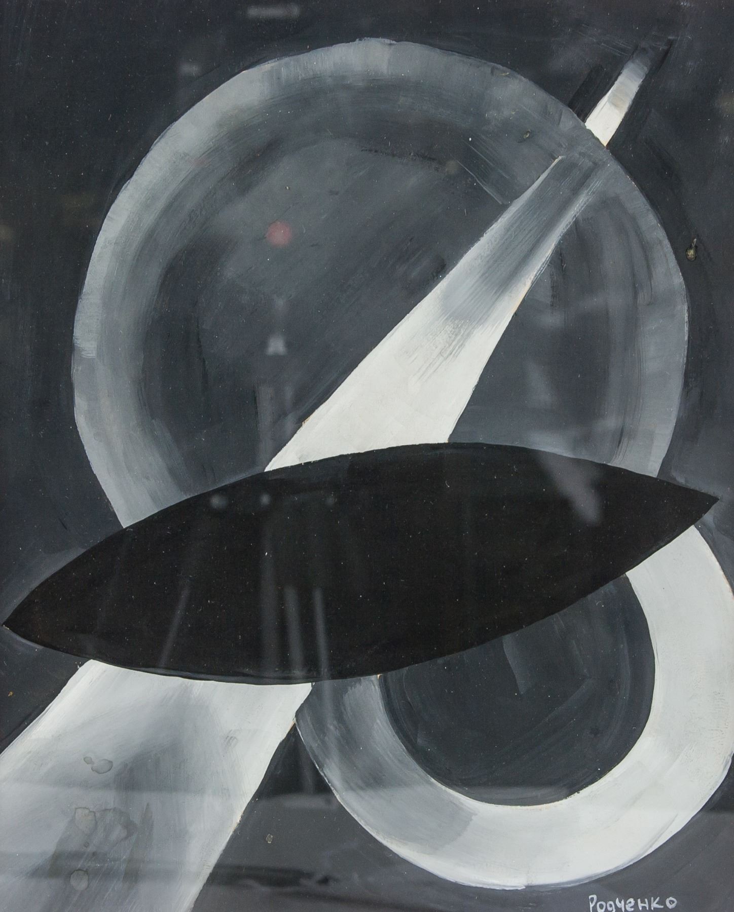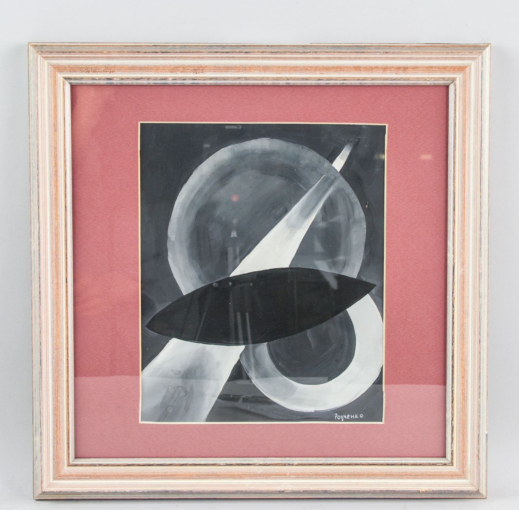 Gouache on paper. Featuring abstract composition. Signed and attr. Alexander Rodchenko (Russian, 1891-1956). 9.1 x 11.2 in. (23 x 18.5 cm). A central figure in Russian Constructivism, Alexander Rodchenko rejected the established artistic conventions of self-expression and aesthetics, dedicating himself with revolutionary fervour to bringing art to the masses. Rodchenko and the Constructivists produced radically abstract paintings, concerned with the placement and movement of objects in space and emphasizing dynamic diagonal compositions. Denouncing easel painting and fine art on ideological grounds, Rodchenko joined the Productivist group in 1921, which advocated for the integration of art into everyday life; he duly focused on graphic design, producing propaganda posters and advertisements. Later in his career Rodchenko became impressed with the photomontage of the German Dadaists and began his own experiments in the medium. Arguably having producing the first ever monochromes, Rodchenko later proclaimed, “I reduced painting to its logical conclusion and exhibited three canvases: red, blue, and yellow. I affirmed: it’s all over.” PROVENANCE: Southern Ontario Estate