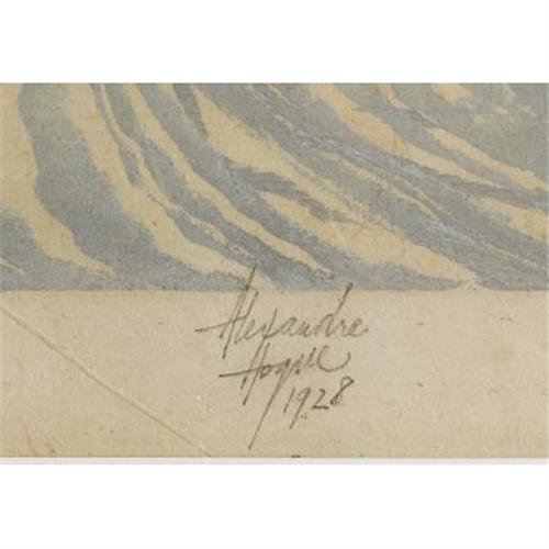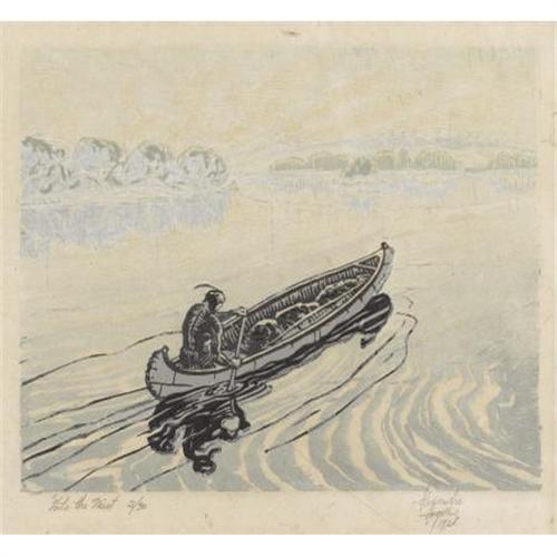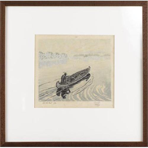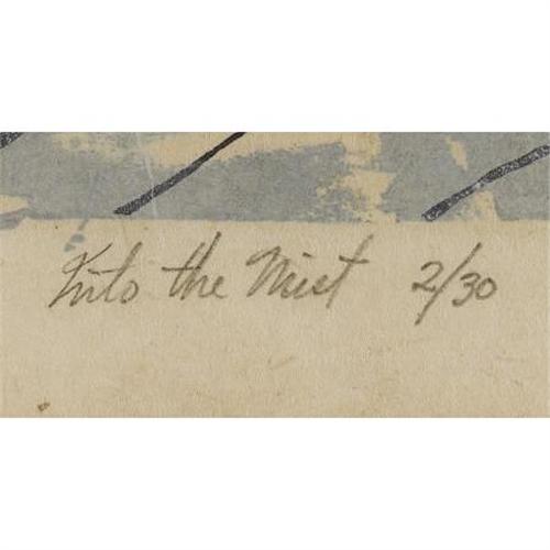 <B>ALEXANDRE HOGUE (1898-1994)</B></I><BR><I>Into the Mist</B></I>, 1928<BR>Color-woodblock print on paper<BR>8 x 10 inches (20.3 x 25.4 cm)<BR>Signed and dated lower right<BR>Titled lower left<BR><BR> This color-woodblock print exists in at least two different color variations.<B>Condition Report:</B> Excellent condition. New framed in excellent condition.<BR><BR><b>Shipping:</b> Requires 3rd Party Shipping (<a target="_blank" href="http://www.heritageauctions.com/common/shipping.php">view shipping information</a>)