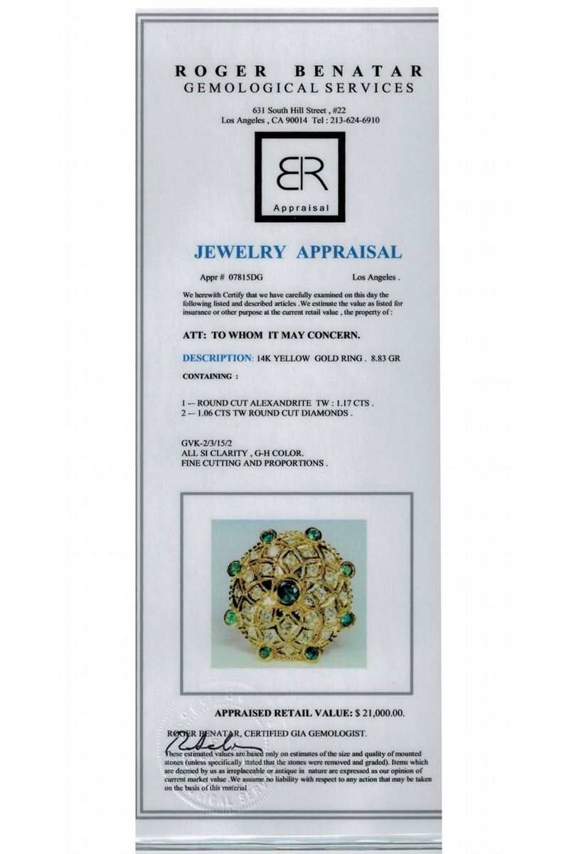 ALEXANDRITE 1.17CT / DIAMOND 1.06CT / 14K YELLOW GOLD 8.83GRAM / GVK2/3/15(2)