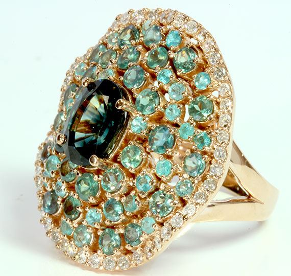 ALEXANDRITE 1.86CT / PARAIBA TOURMALINE 0.57CT / DIAMOND 0.57CT / 18K ROSE GOLD RING 15.32GRAM