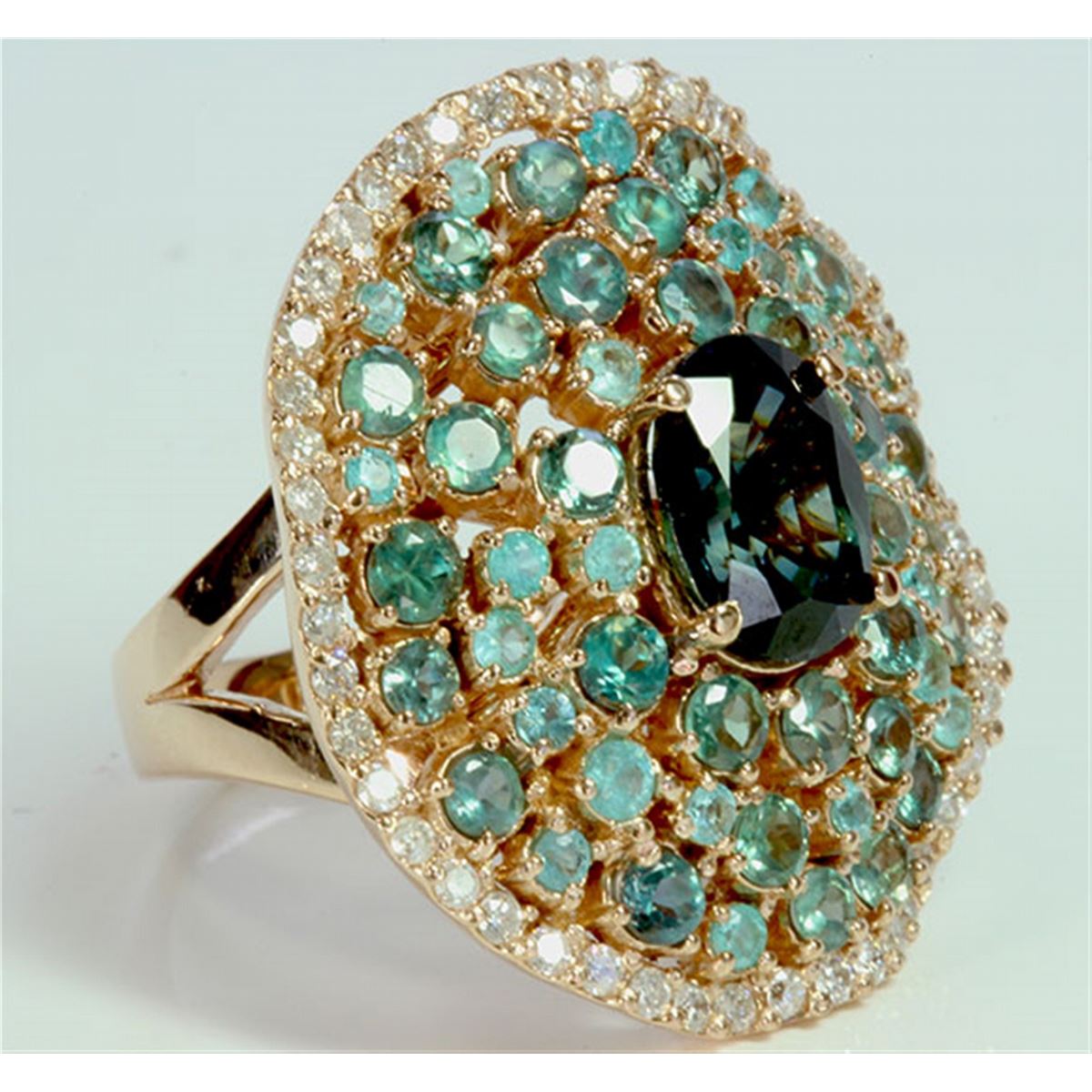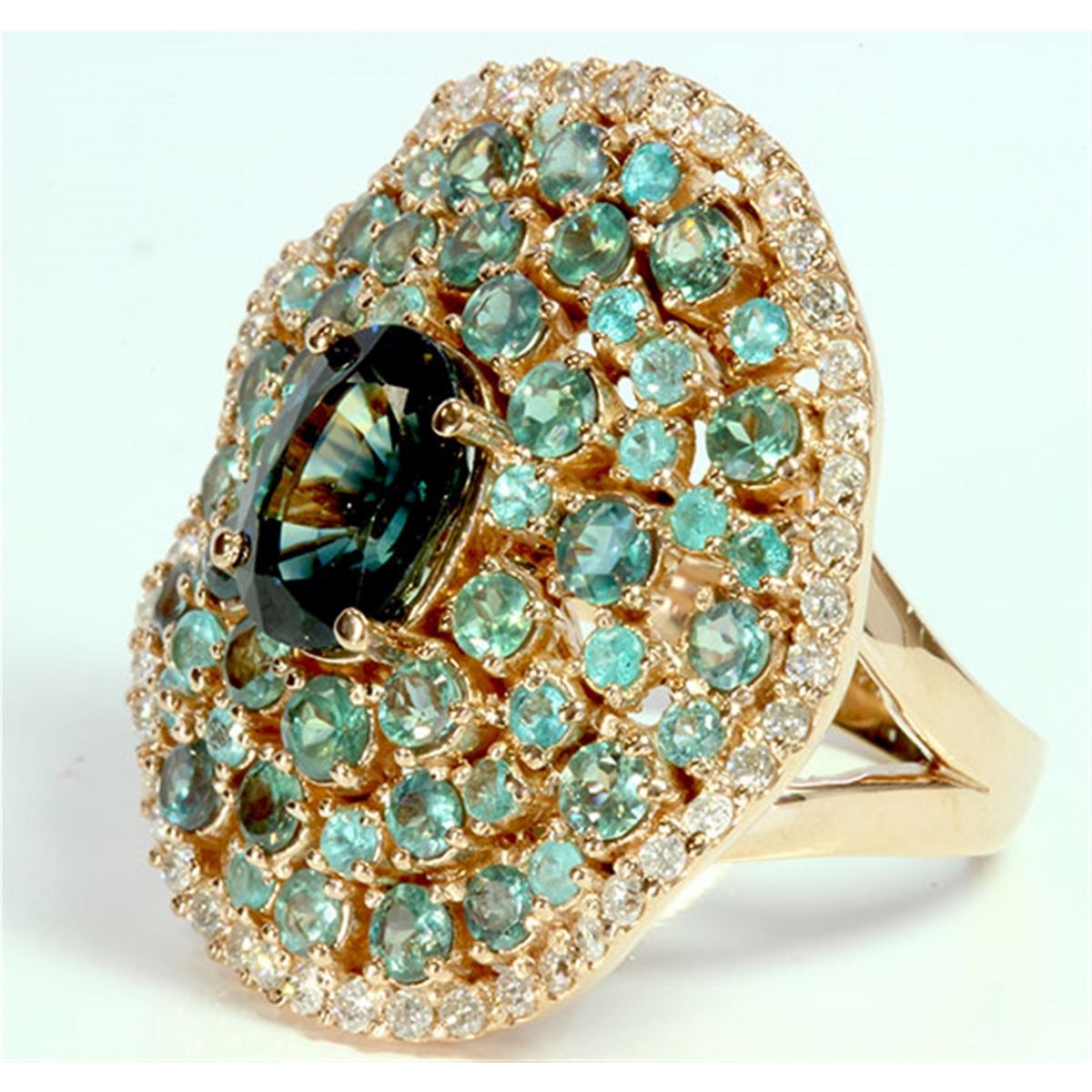ALEXANDRITE 1.86CT / PARAIBA TOURMALINE 0.57CT / DIAMOND 0.57CT / 18K ROSE GOLD RING 15.32GRAM