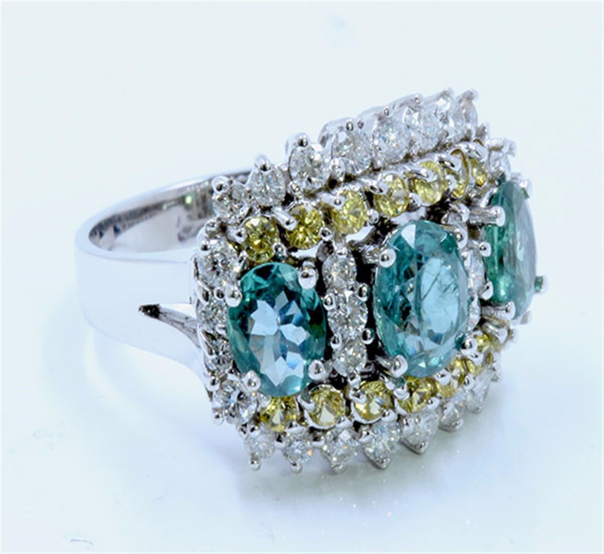 ALEXANDRITE 2.91CT / Y.SAPPHIRE 0.60CT, 14K W/G RING 7.28GRAM / DIAMOND 0.96CT