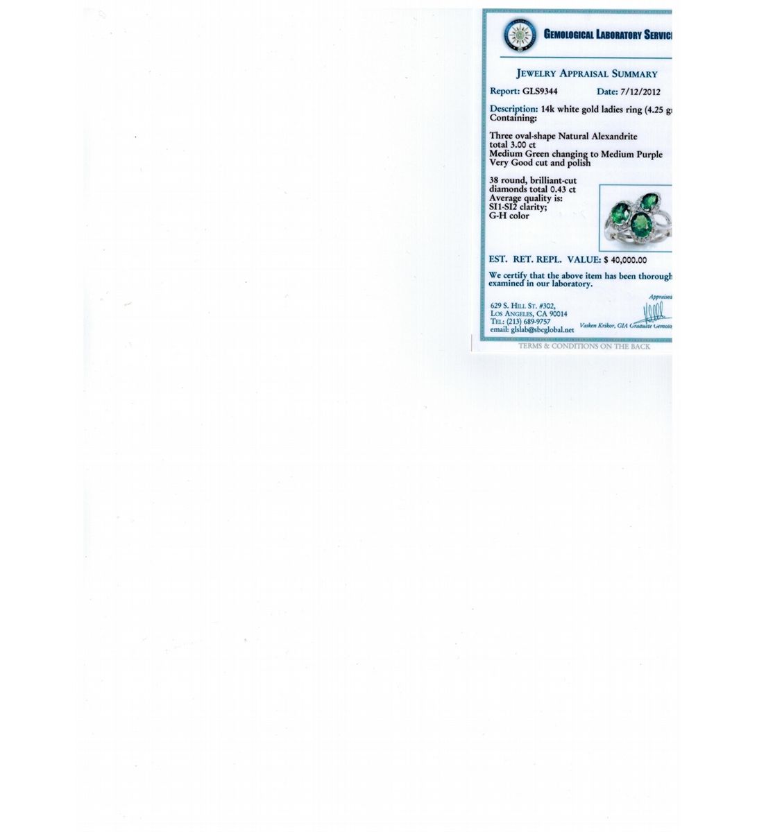 ALEXANDRITE 3.00CT, 14K W/G RING 4.25GRAM / DIAMOND 0.43CT