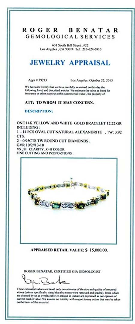 ALEXANDRITE 3.92CT, 14K W/Y/G BRACELET 12.22GRAM / DIAMOND 0.95CT