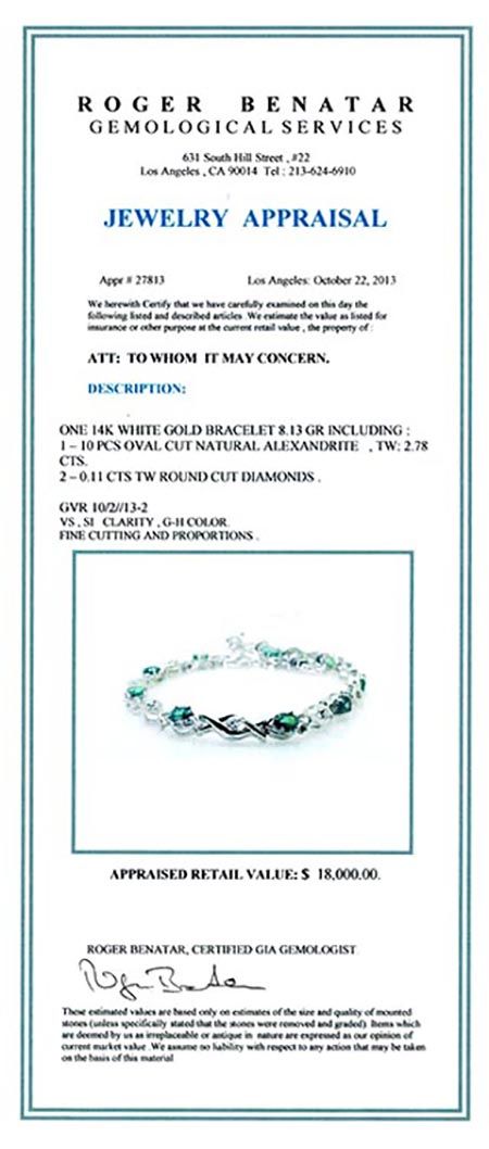 ALEXANDRITE OVAL 2.78CT, 14K W/G BRACELET 8.13GRAM / DIAMOND RD 0.11CT
