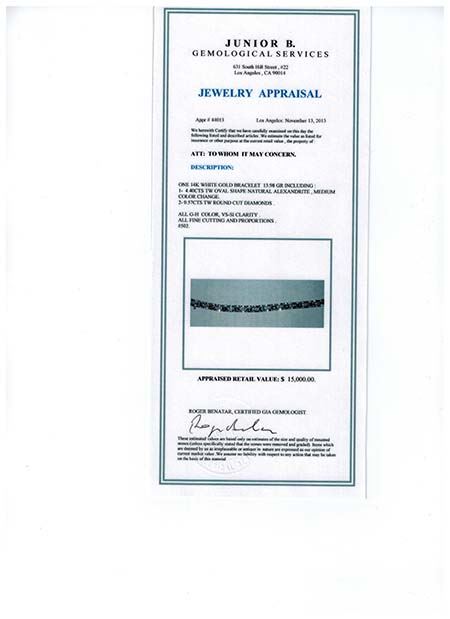 ALEXANDRITE OVAL 4.04CT, 14K W/G BRACELET 13.98GRAM / DIAMOND RD 0.57CT
