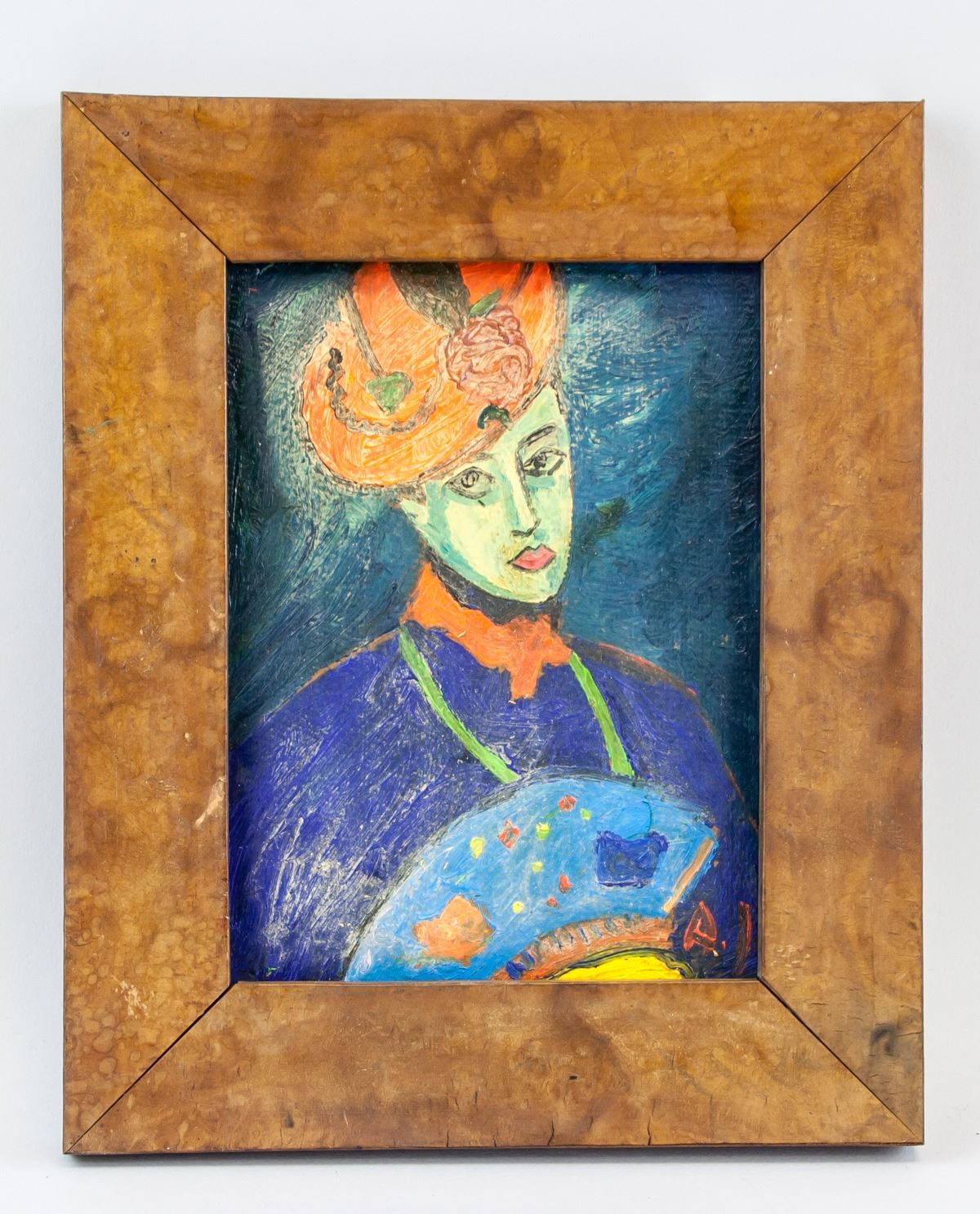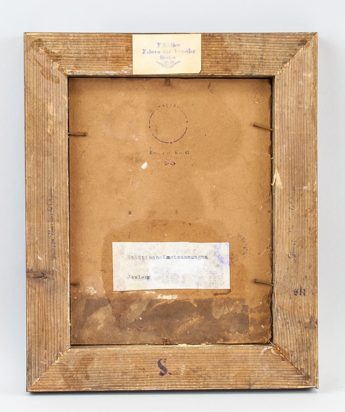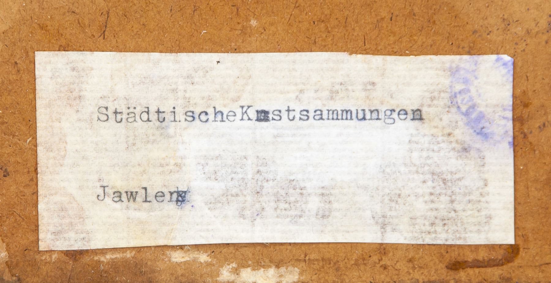 Oil and gouache on board, framed. Featuring a portrait of a lady. Signed and attr. Alexej Jawlensky (Russian, 1864-1941) on the lower right corner. Gallery label on verso. 20 x 15 cm (7.9 x 5.9 inches). Frame Size: 26.5 x 21 (10.4 x 8.3). Alexej von Jawlensky was born in Torzhok, a town in Tver Governorate, Russia, as the fifth child of Georgi von Jawlensky and his wife Alexandra. He moved to Munich in 1894, where he studied in the private school of Anton Azbe. In 1905 Jawlensky visited Ferdinand Hodler, and two years later he began his long friendship with Jan Verkade and met Paul Serusier. Together, Verkade and Serusier transmitted to Jawlensky both practical and theoretical elements of the work of the Nabis, and Synthetist principles of art. In Munich he met Wassily Kandinsky and various other Russian artists, and he contributed to the formation of the Neue Kunstlervereinigung Munchen. His work in this period was lush and richly coloured, but later moved towards abstraction and a simplified, formulaic style. Between 1908 and 1910 Jawlensky and Werefkin spent summers in the Bavarian Alps with Kandinsky and his companion, the painter Gabriele Munter. Here, through painting landscapes of their mountainous surroundings, they experimented with one another’s techniques and discussed the theoretical bases of their art. Following a trip to the Baltic coast, and renewed contact with Henri Matisse in 1911 and Emil Nolde in 1912, Jawlensky turned increasingly to the expressive use of colour and form alone in his portraits. PROVENANCE: Private estate (Perugia, Italy)
