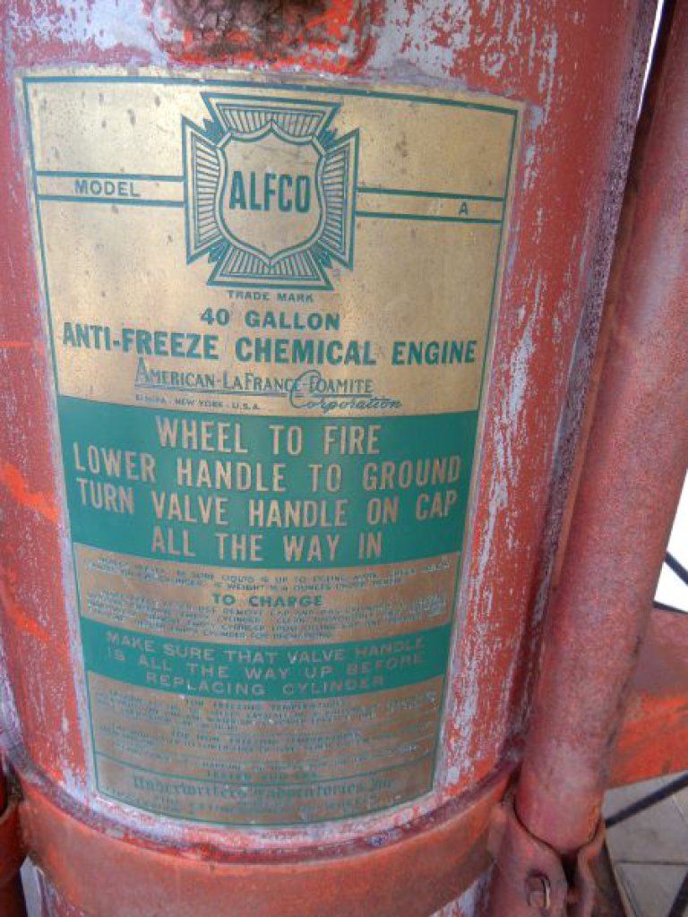 ALFCO ANTI-FREEZE ENGINE WHEELED FIRE CART MODEL 4 - 40 GAL. - UNRESTORED