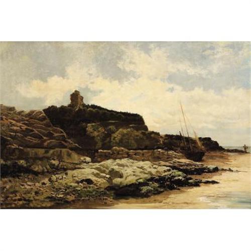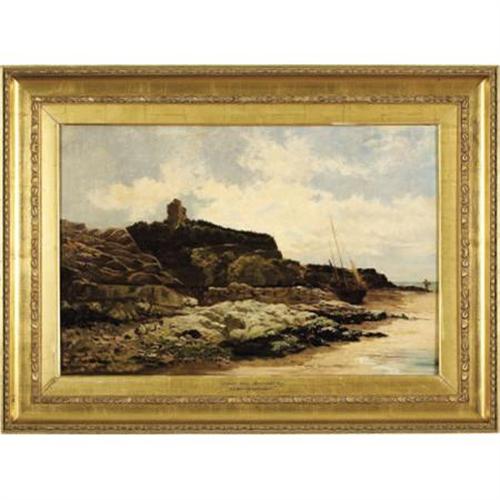<B>Attributed to ALFRED DE BREANSKI</B></I> (British 1852-1928)<BR><I>Heysham Abbey, Morecambe Bay</B></I><BR>Oil on canvas<BR>20-1/4 x 30-1/4 inches (51.4 x 76.8 cm)<BR>Unsigned<BR> <B>Condition Report:</B> Normal wear commensurate with age, cleaned and relined with areas of strengthening<BR><BR><b>Shipping:</b> Requires 3rd Party Shipping (<a target="_blank" href="http://www.heritageauctions.com/common/shipping.php">view shipping information</a>)