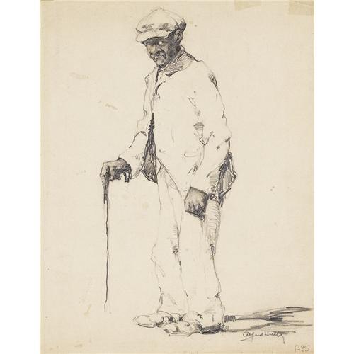 <B>ALFRED HERBER HUTTY</B></I> (American 1877-1954)<BR><I>Portrait of a man,</B></I> circa 1952<BR>Charcoal on paper<BR>15 x 11-1/2 inches (38.1 x 29.2 cm)<BR>Signed lower right: <I>Alfred Hutty</B></I>; inscribed in the corner in pencil: <I>P-85</B></I><BR>Inscribed verso: <I>Bought from Alfred Hutty / Charleston, SC / Mar. 1952 / pencil sketch</B></I><BR><BR>Provenance:<BR>Acquired from the artist, March 1952;<BR>Bessie Heard (McKinney, Texas);<BR>Bessie Heard Trust <B>Condition Report:</B> Some toning, two small foxing spots right of center; scattered stains; minor handling wrinkles; 1/4 inch tear on lower right margin; tape and mounting vestiges in upper corners<BR><BR><b>Shipping:</b> Requires 3rd Party Shipping (<a target="_blank" href="http://www.heritageauctions.com/common/shipping.php">view shipping information</a>)