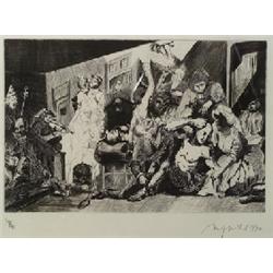 Radierung. Achtes Blatt aus dem Zyklus "Rake's Progress" nach William Hogarth. 33,5 x 48 cm (Plattengröße). Künstlersignatur, Jahreszahl 1970 und Exempl. 72/90 (handschriftlich mit Bleistift). Rahmen, Glas. 1970