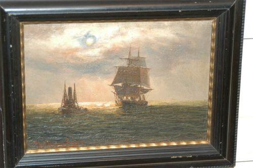 ALFRED JANSON, 9 1/2"x14" oil on canvas, ships at sea, condition: flaking at center, PACKING AND SHIPPING (excluding insurance) $20,
