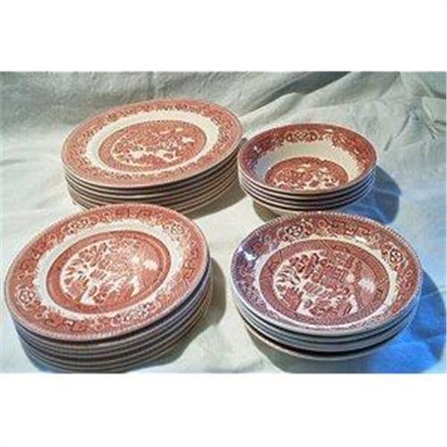 VINTAGE ALFRED MEAKIN PINK OR RED WILLOW 25 pieces of vintage Alfred Meakin Willow pattern dishes.