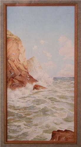 ALFRED T. BRICHER 20"x10" watercolor coastal scene signed lower left late 19th century <BR>condition: excellent, with a couple very small light water stains, quality new frame and mat, not inspected out of frame