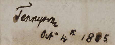(1809 - 1892) English Poet Laureate and playwright. Bold signature on a small slip adding date Oct. 4, 1865. Smearing to signature, just good, matted and framed. Not examined out of frame