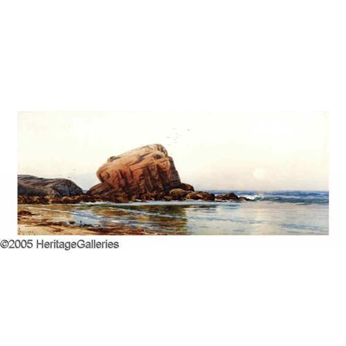 <B>ALFRED THOMPSON BRICHER (American 1837-1908)</B></I><BR><I>Full Moon Rising</B></I><BR>Watercolor on paper<BR>9.75in.x 21in.<BR>Signed lower right<BR>Provenance:Cooley Gallery, Old Lyme, CT<BR>Private Collection, New York<BR><BR>Brian Roughton: Attribution is okay.<BR><BR>Gavin Spainerman: Attribution is okay.<BR>1 Items <BR><BR><B>Condition Report:</B> Overall very good condition, colors are vibrant