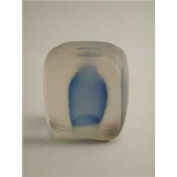 farbloses Glas mit blauem Innenüberfang und Incisoschliff, Würfelform mit leicht gerundeten Ecken. Gebrauchsspuren. 6,5 x 6,5 cm. Unbezeichnet. 1960er Jahre