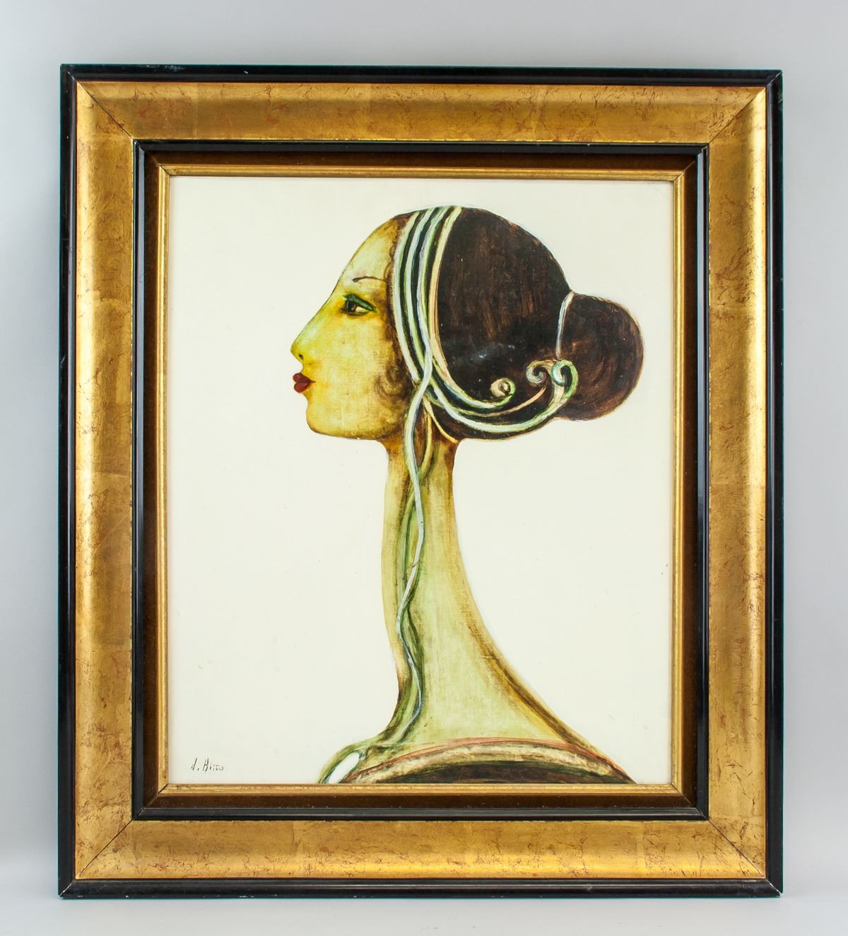 Oil on canvas, framed painting. Featuring a portrait and entitled, "Profile of a Woman." Signed and attr. Alfredo Hlito (Argentinian, 1923-1993) on the lower left corner. 55 x 46 cm (21.7 x 18.1 inches). Frame size: 71.5 x 63 cm (28.1 x 24.8 inches). Born in Buenos Aires in 1923, Alfredo Hlito attended the Escuela Nacional de Bellas Artes. His first works showed a considerable influence of the Uruguayan Joaquín Torres García, though some years later he turned towards clearer forms and implemented a more abstract sense of composition. In 1945 he was a charter member of the Asociación Arte Concreto-Invención, and signed the Inventionist Manifesto in 1946. His austere and personal style remained unchanged throughout great part of his work. During the concrete period (1945-1955) he wrote extensively on the problems of this type of abstraction, and those texts were compiled in 1995 by the Academia Nacional de Bellas Artes. He took part, together with other members of the Asociación Arte Concreto-Invención in the Salon des Realités Nouvelles, Paris, as well as in the New Realities exhibition at the Van Riel gallery, Buenos Aires, both in 1948. In 1951 he collaborated with Tomas Maldonado in the founding of Nueva Visión magazine. In 1954 he received the Acquisition Award from the II Biennial Exhibition of San Pablo, and the following year he participated in the XXVIII Biennial International Art Exhibition of Venice. He was a Number Member of the Academia Nacional de Bellas Artes as from 1984. In 1987 the Museo Nacional de Bellas Artes organized an important retrospective exhibition of his works, Alfredo Hlito. Obra pictórica 1945/1985 (Alfredo Hlito, Pictorial Work 1945/1985). He also participated in important collective exhibitions, such as Vanguardias de la década de los 40. Arte Concreto-Invención. Arte Madí. Perceptismo at the Eduardo Sivori Museum (1980); Argentina, Concrete Art Invention 1945, Madí Group 1946 at the Rachel Adler Gallery, New York (1990); in the Art from Argentina 1920/1994 exhibition opened at Modern Art Oxford, 1994, a travelling exhibition that after visiting several European countries, was closed at the Centro Cultural Borges, Buenos Aires, in 1995. PROVENANCE: Private American collection (Florida, United States)
