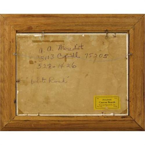 <B>ALICE ADKINS MEREDITH (b. 1905)</B></I><BR><I>White Rock</B></I><BR>Oil on canvasboard<BR>12 x 16 inches (30.5 x 40.6 cm)<BR>Signed lower left<BR>Signed and titled verso<BR><BR> Provenance:<BR>Estate of Alice Adkins Meredith<B>Condition Report:</B> Excellent original condition. Painting would benefit from a light surface cleaning.<BR><BR><b>Shipping:</b> Requires 3rd Party Shipping (<a target="_blank" href="http://www.heritageauctions.com/common/shipping.php">view shipping information</a>)