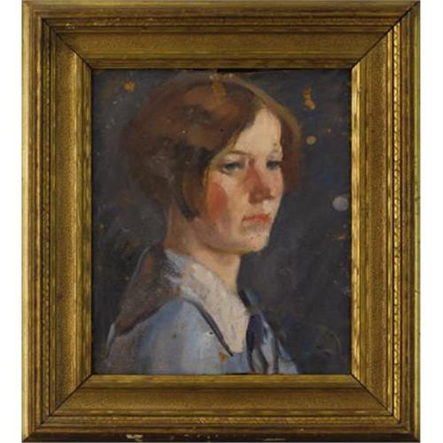<B>ALICE ADKINS MEREDITH (b. 1905)</B></I><BR>Untitled Portrait of a Girl / Still Life<BR>Oil on masonite (double-sided)<BR>13-3/4 x 11-3/4 inches (34.9 x 29.8 cm)<BR>Signed verso<BR><BR> This painting is double-sided with a portrait of a girl on one side and a still life on the other.<BR><BR>Provenance:<BR>Estate of Alice Adkins Meredith<BR>Acquired from the above by the present owner<B>Condition Report:</B> Both sides have minor losses, and both sides would benefit from cleaning. Period frame in good condition.<BR><BR><b>Shipping:</b> Requires 3rd Party Shipping (<a target="_blank" href="http://www.heritageauctions.com/common/shipping.php">view shipping information</a>)