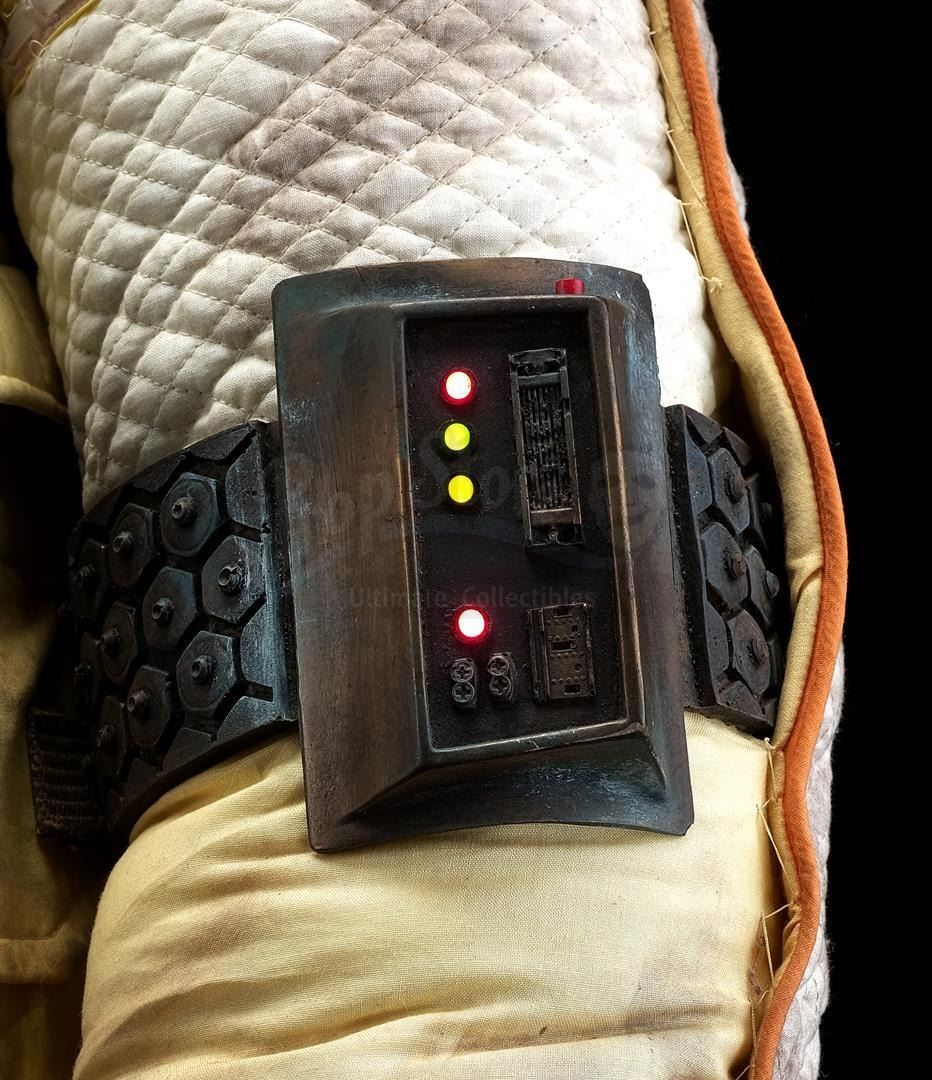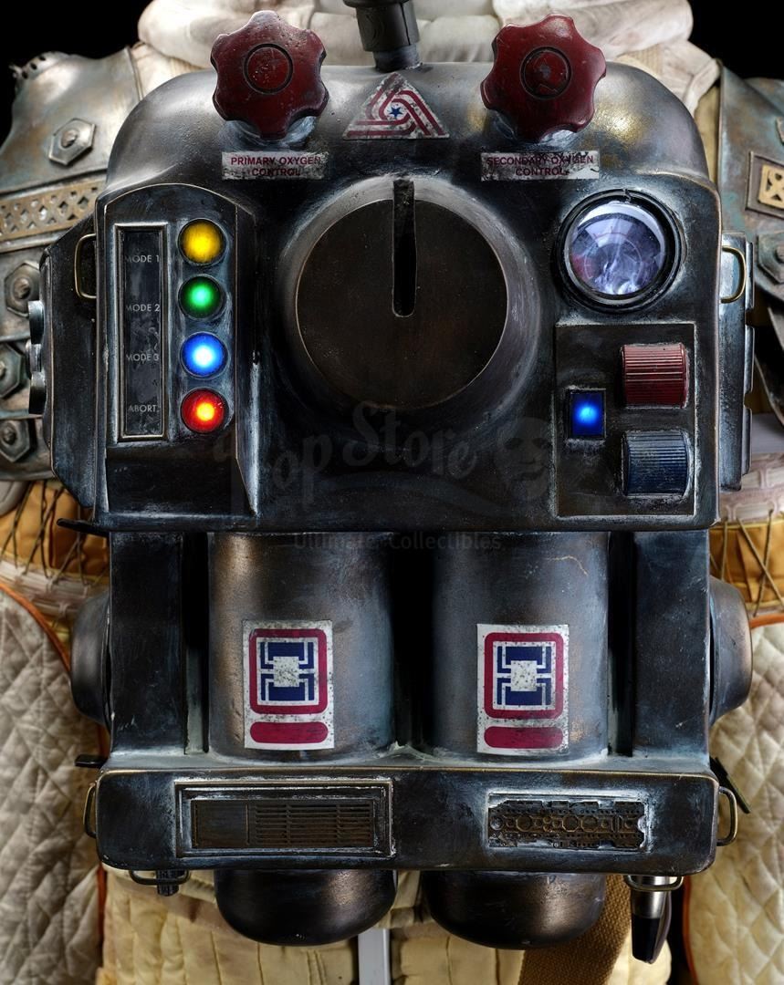 A light-up replica of Thomas Kane's (John Hurt) spacesuit from Ridley Scott's sci-fi horror film Alien. Kane, executive officer of the USCSS Nostromo, wore his spacesuit to explore LV-426 in response to a mysterious signal emanating from it.