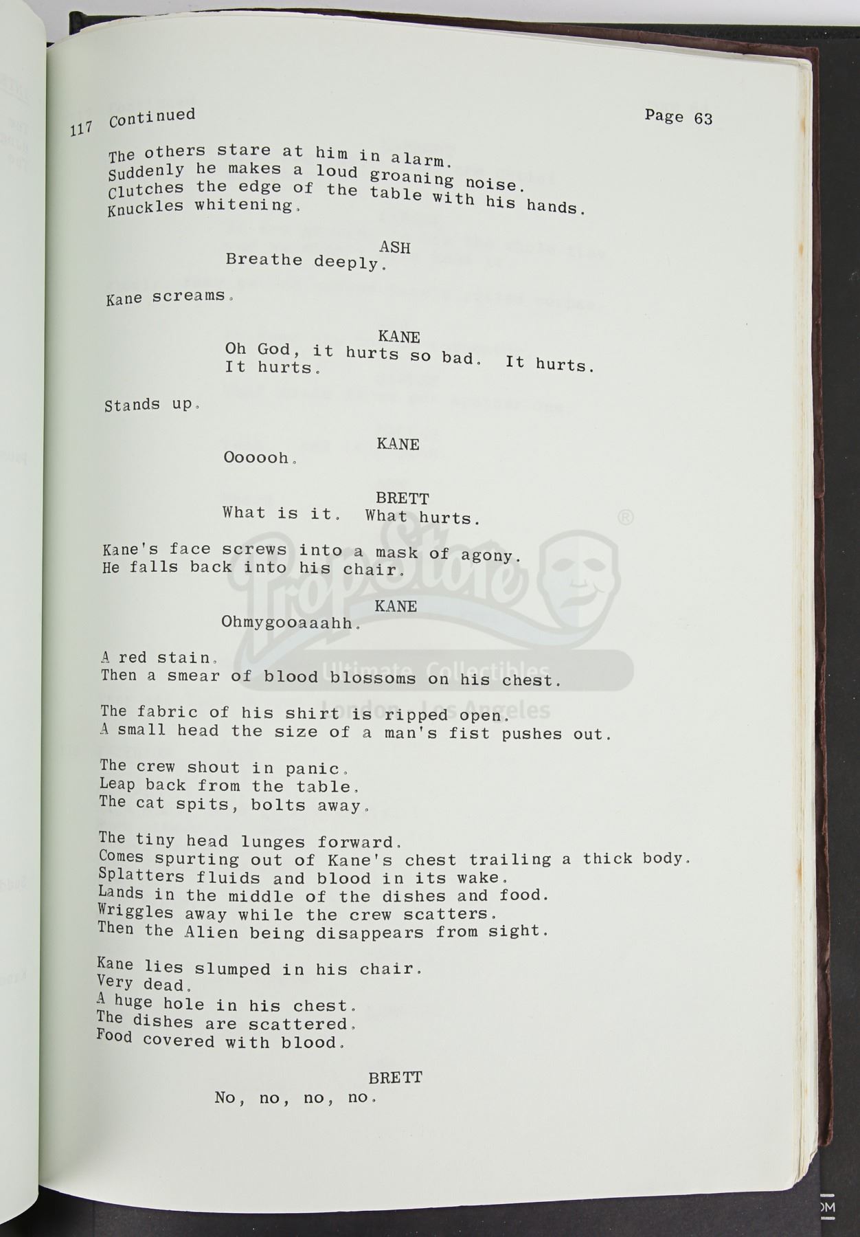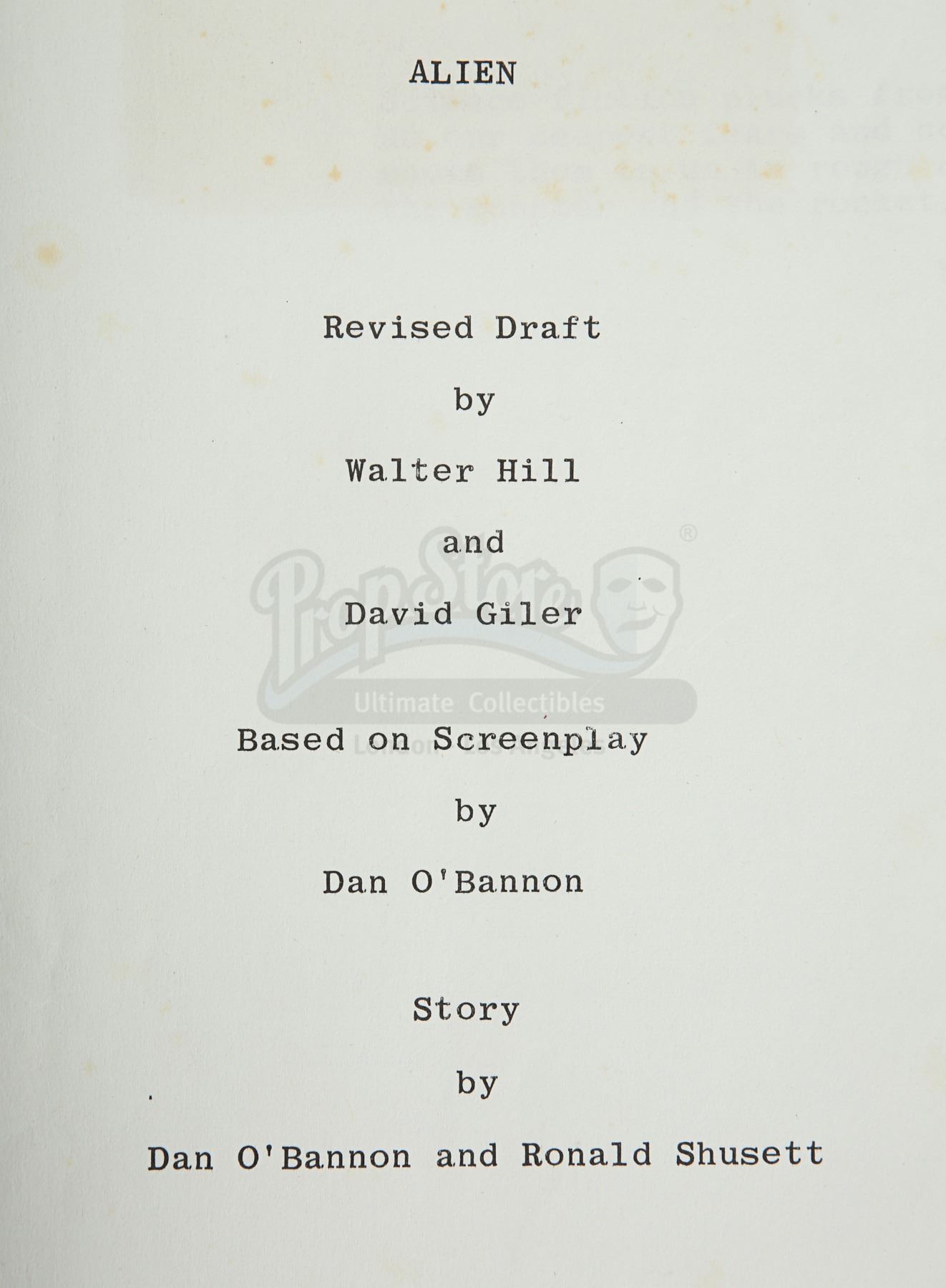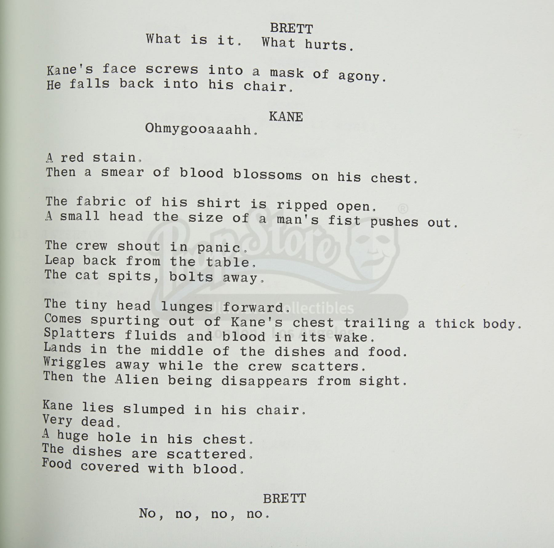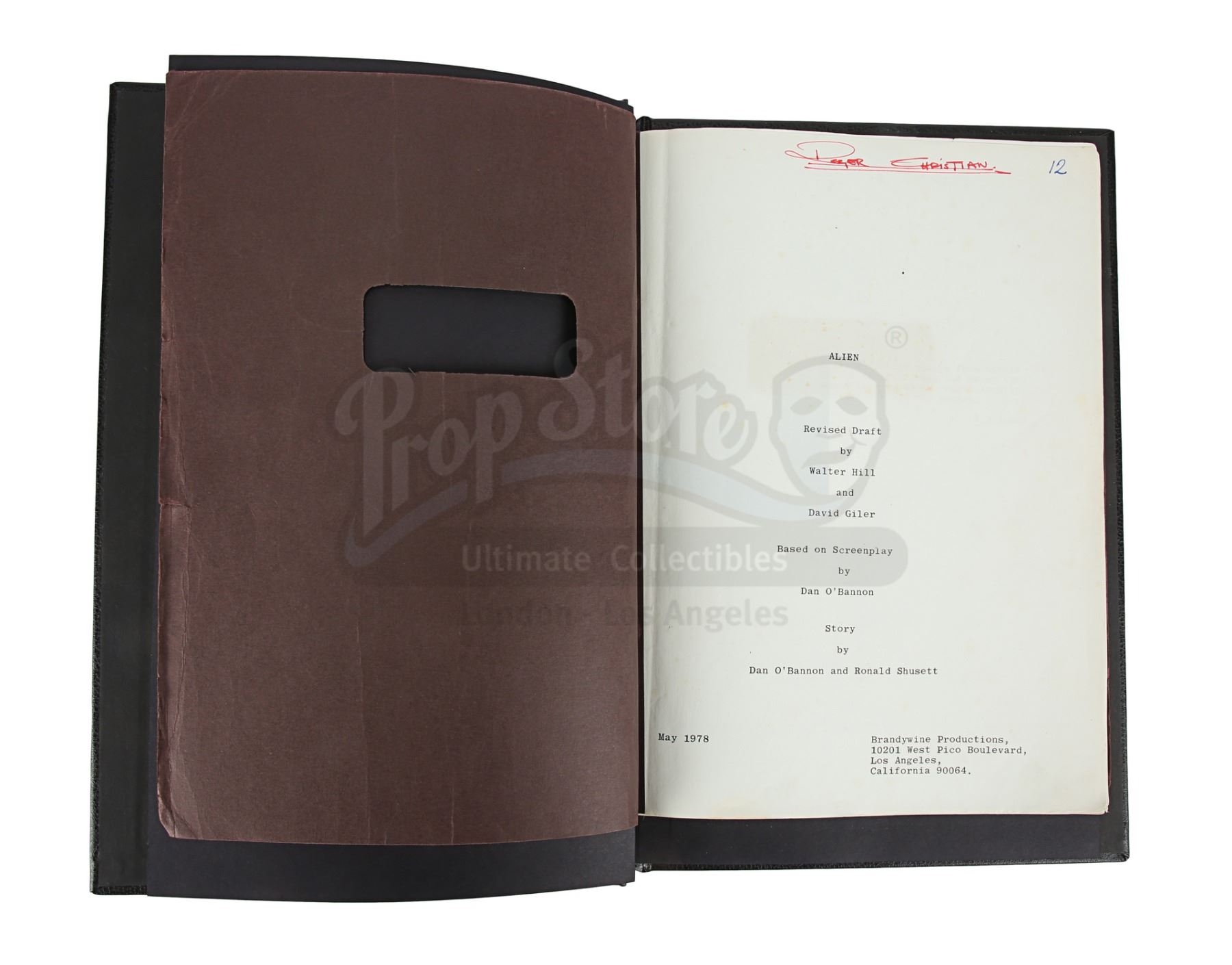Roger Christian's annotated script from the production of Ridley Scott's sci-fi horror Alien. Christian was nominated for an Academy Award for his work as art director on the film, and had recently won an Academy Award for his set decoration on Star Wars.