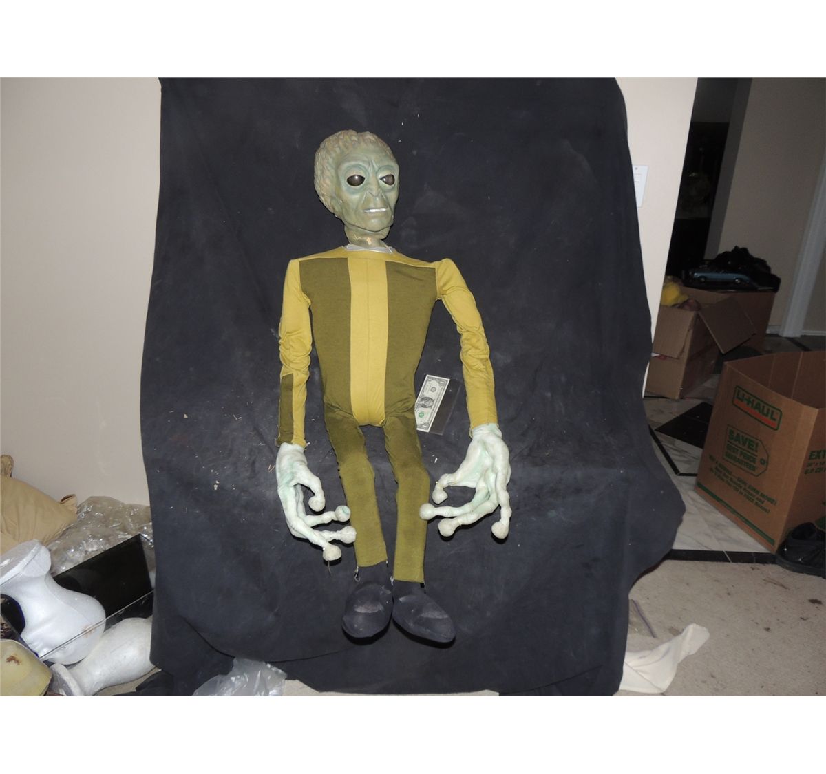 ALIEN ARMATURED LIFE SIZE PUPPET IN SPACE SUIT.