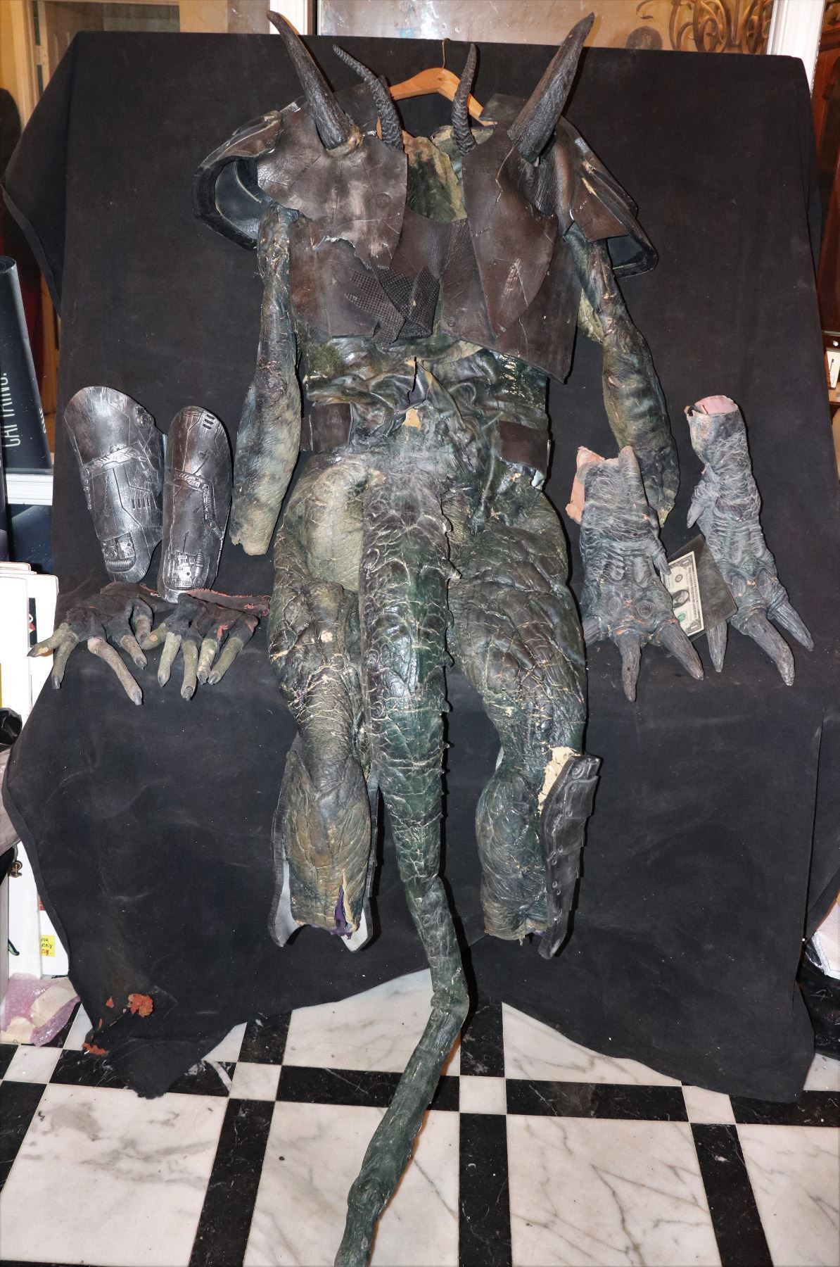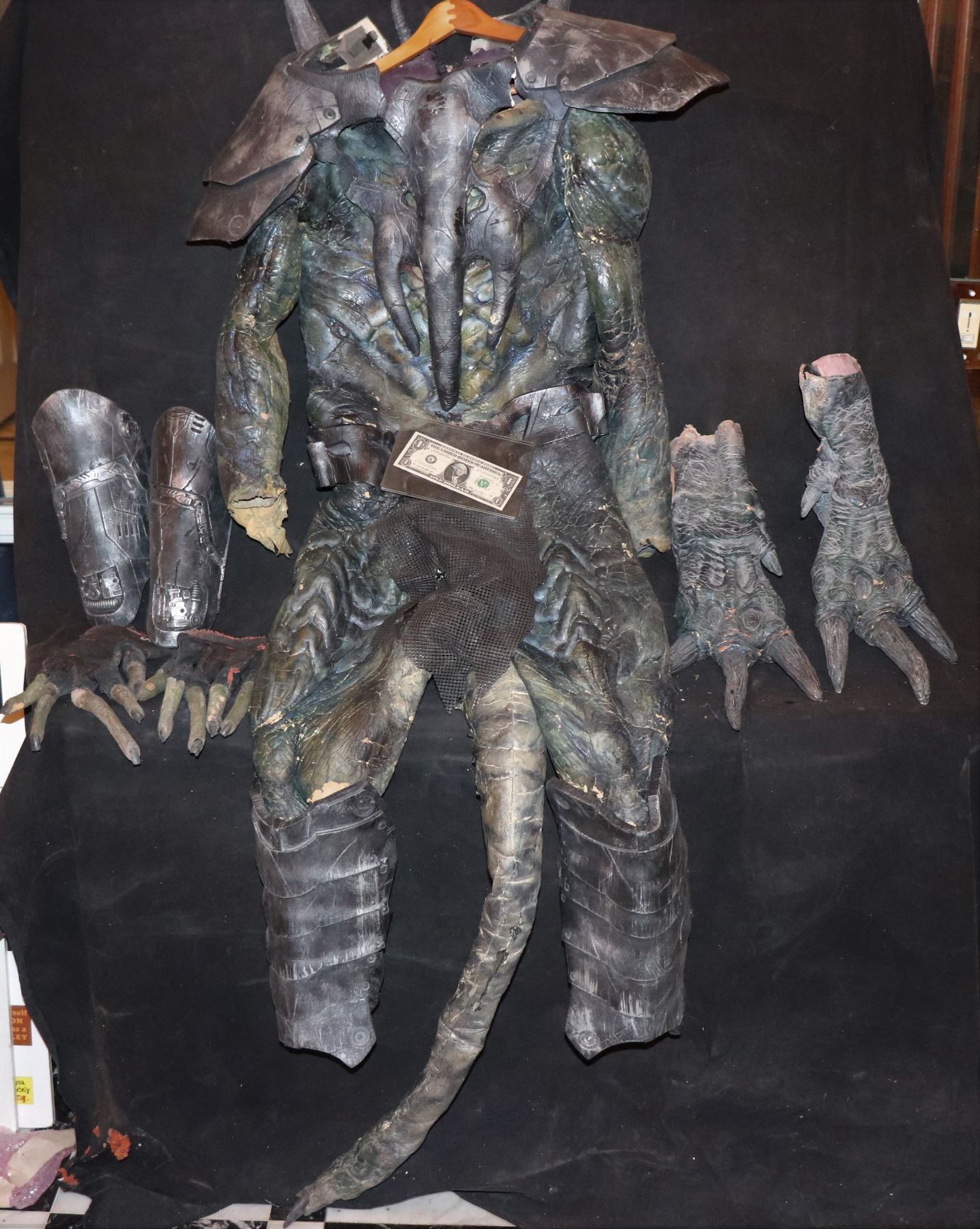 ALIEN ARMORED CREATURE SUIT COMPLETE WITH TAIL HANDS FEET AND GAUNTLETS.