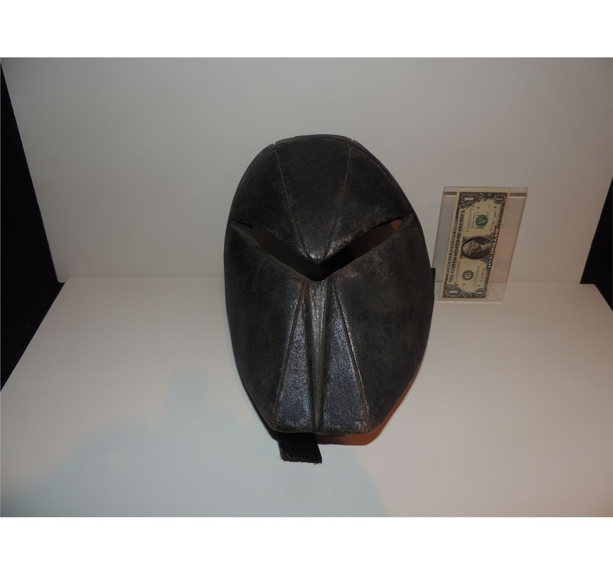 This is a wearable fiberglass full face helmet or mask that looks armored and alien. Has secure straps for a good fit. You could wear this on stage, in paint ball league, during sports, or a Kinky night at home. LOL!