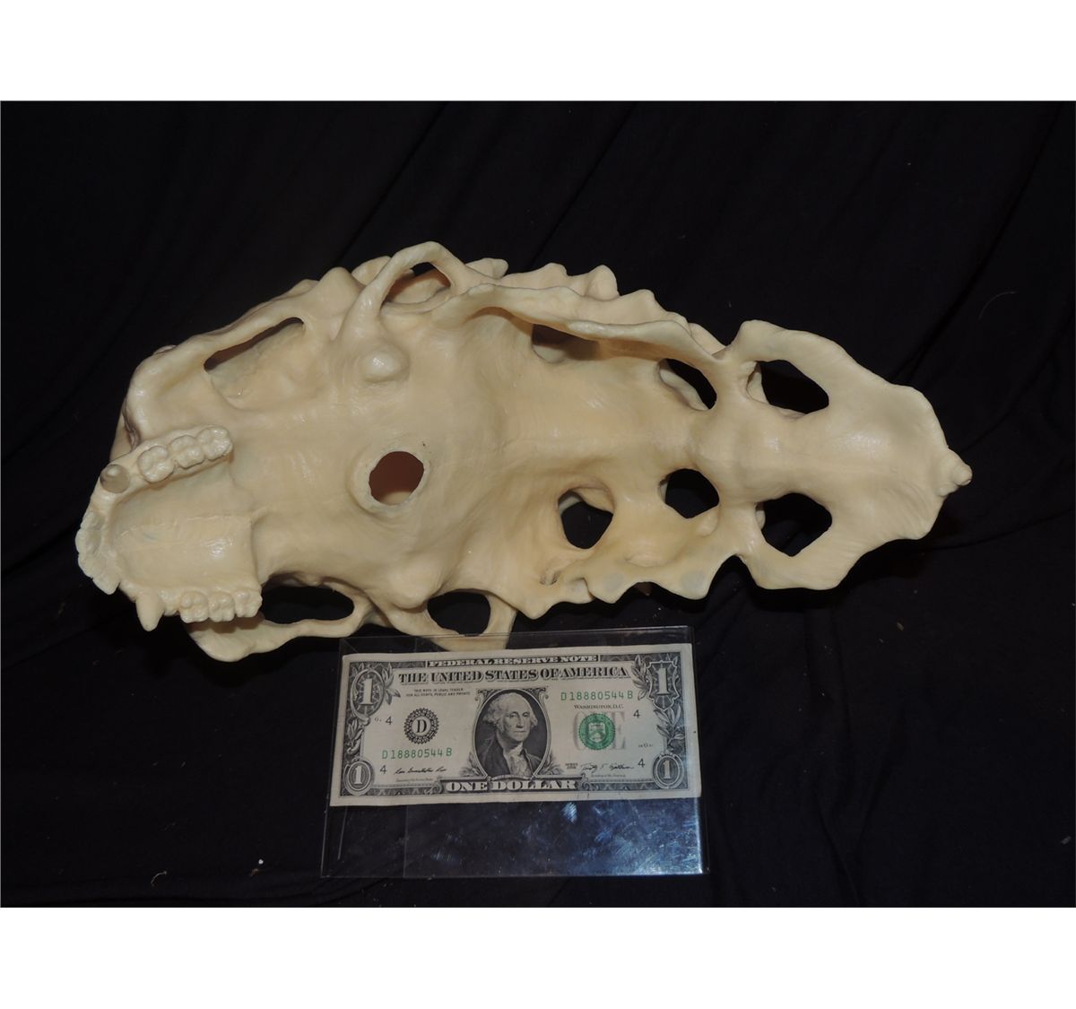 Very cool Alien creature skull. Cast in resin about as thick as a real human skull. Made for a film that was never produced so this is the only one of these. No flaws that I can see, other than the missing lower jaw.