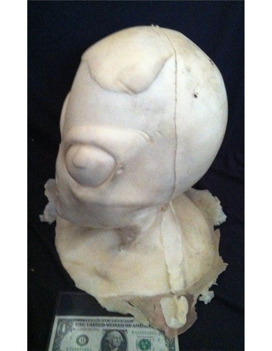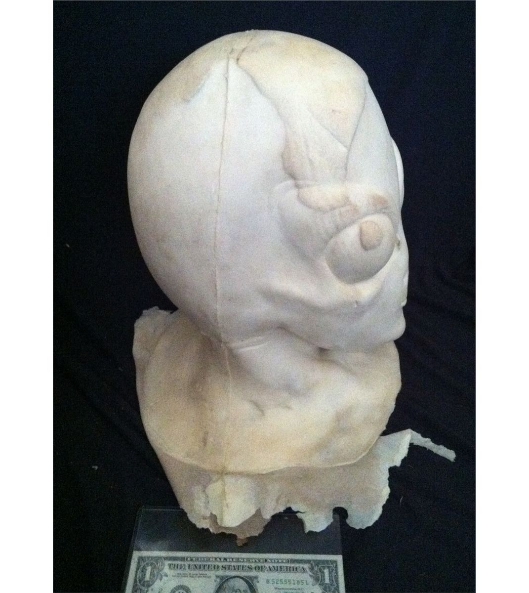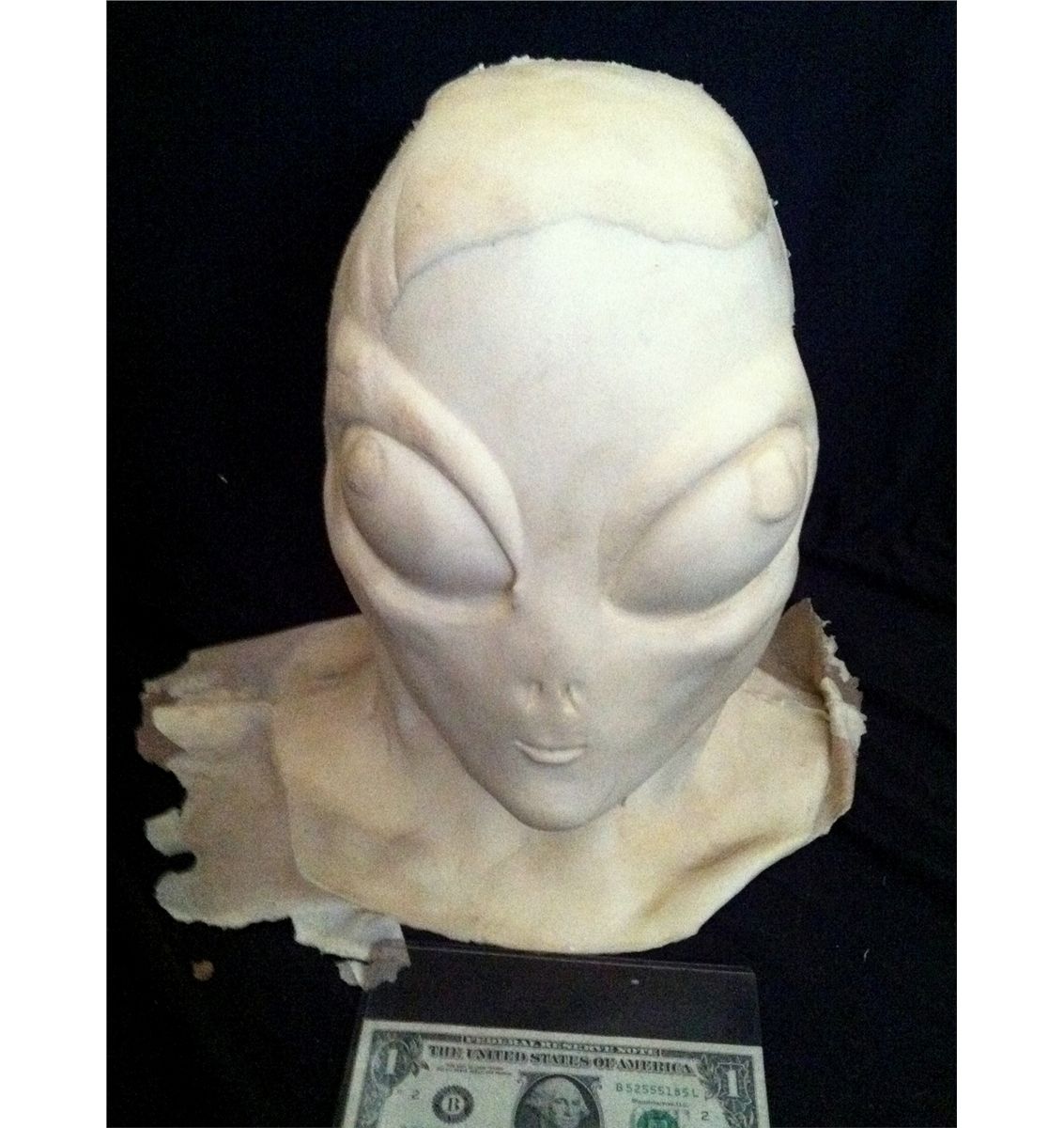 Offered here is a classic looking alien creature full head unused make up appliance. Interesting, it appears to be molting, or emerging from some other skin.