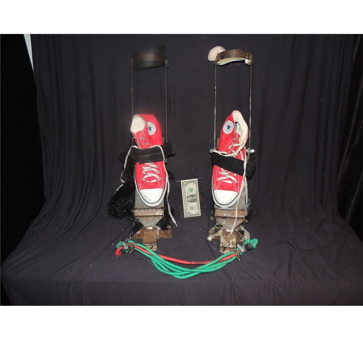 These are a very well made matched set of costume stilts. These elevate your height, and give a more unnatural stance. Excellent for Alien creature, monster, Demon, or Werewolf. This is the nicest pair of these I have ever offered!