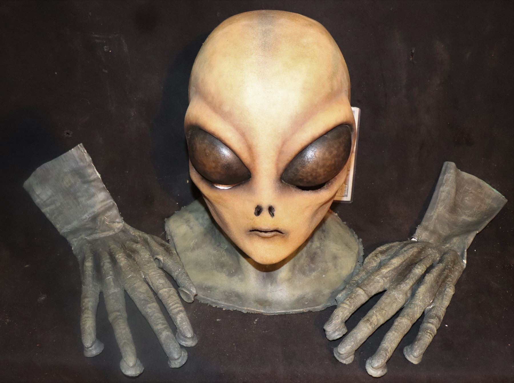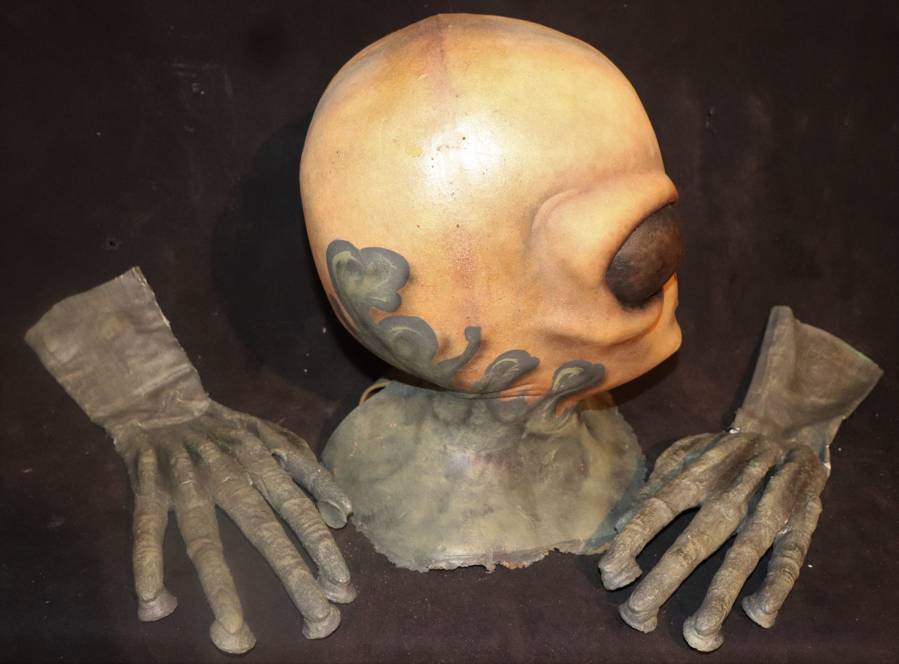 ALIEN HEAD MASK AND MATCHING HANDS LATEX WEARABLE