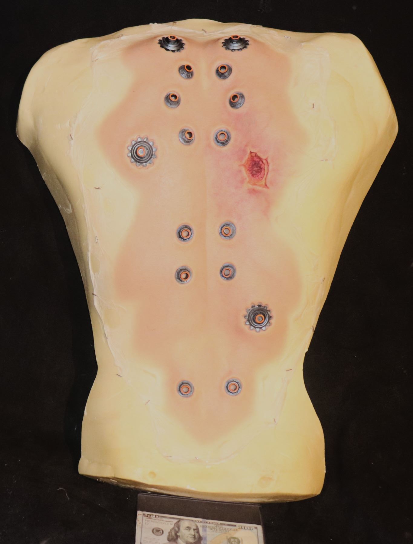 MATRIX "LIKE" SILICONE APPLIANCE WITH PLUGS & GUNSHOT WOUND ON FORM FOR DISPLAY!