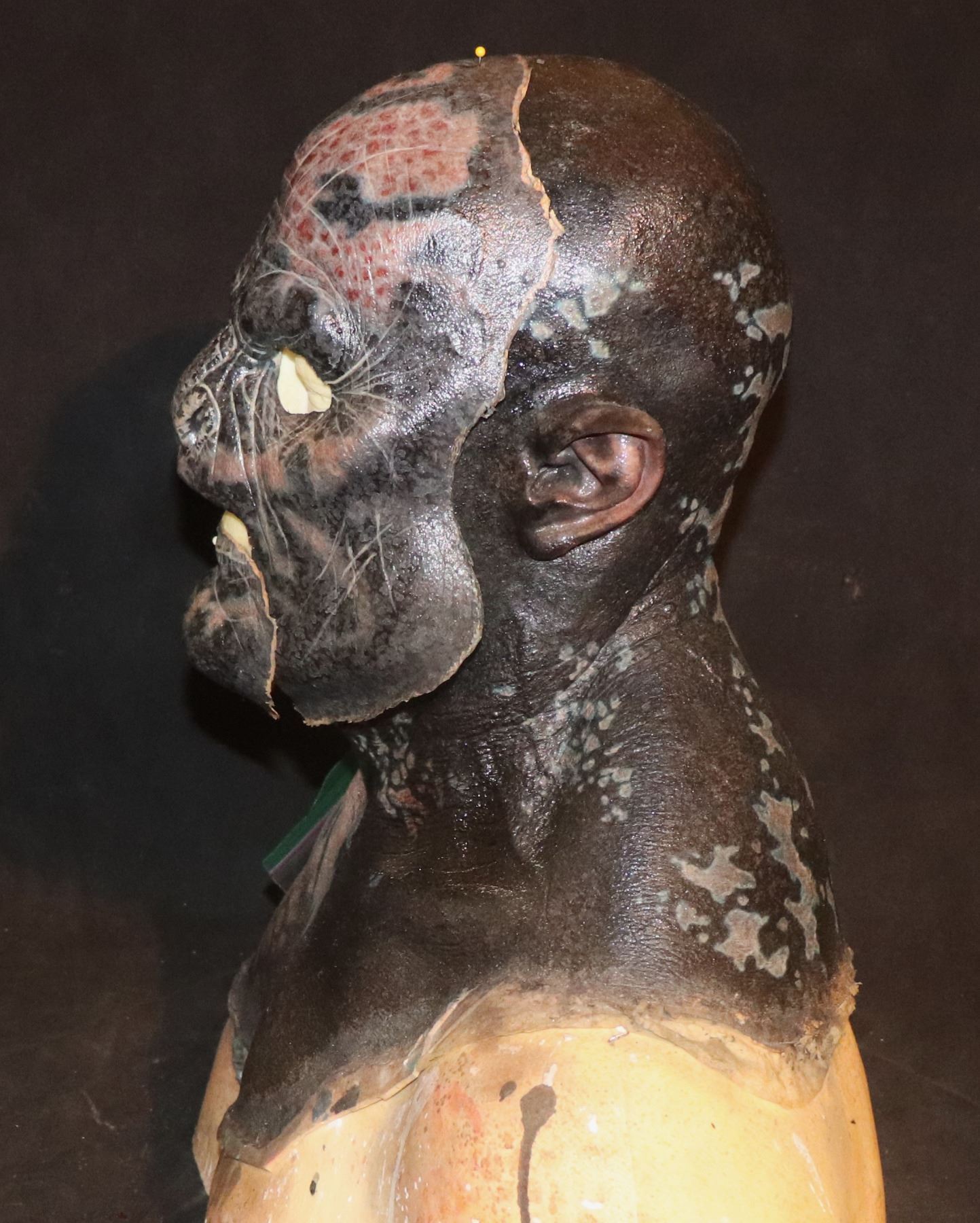 ALIEN ORC COWL AND FACIAL APPLIANCES ON LIFE CAST BUST!