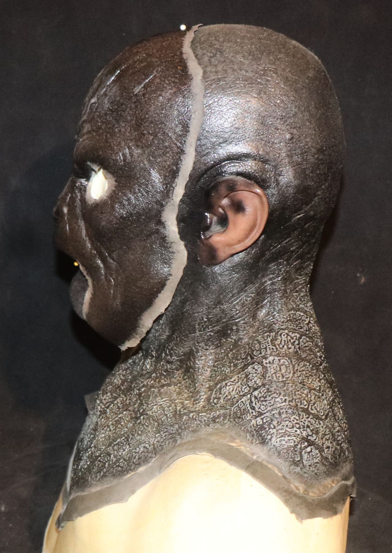 ALIEN ORC COWL AND FACIAL APPLIANCES ON LIFE CAST BUST D