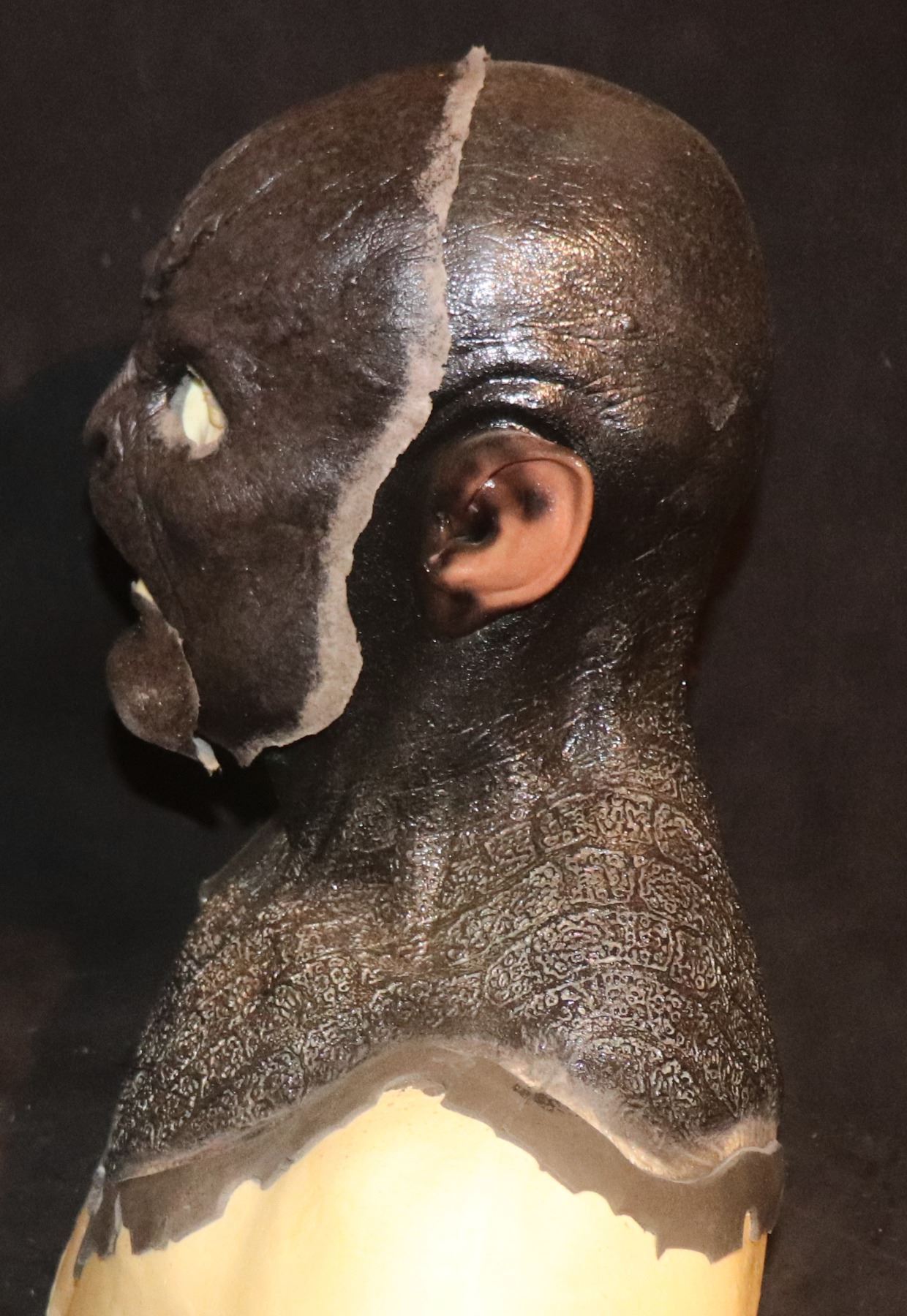 ALIEN ORC COWL AND FACIAL APPLIANCES ON LIFE CAST BUST!