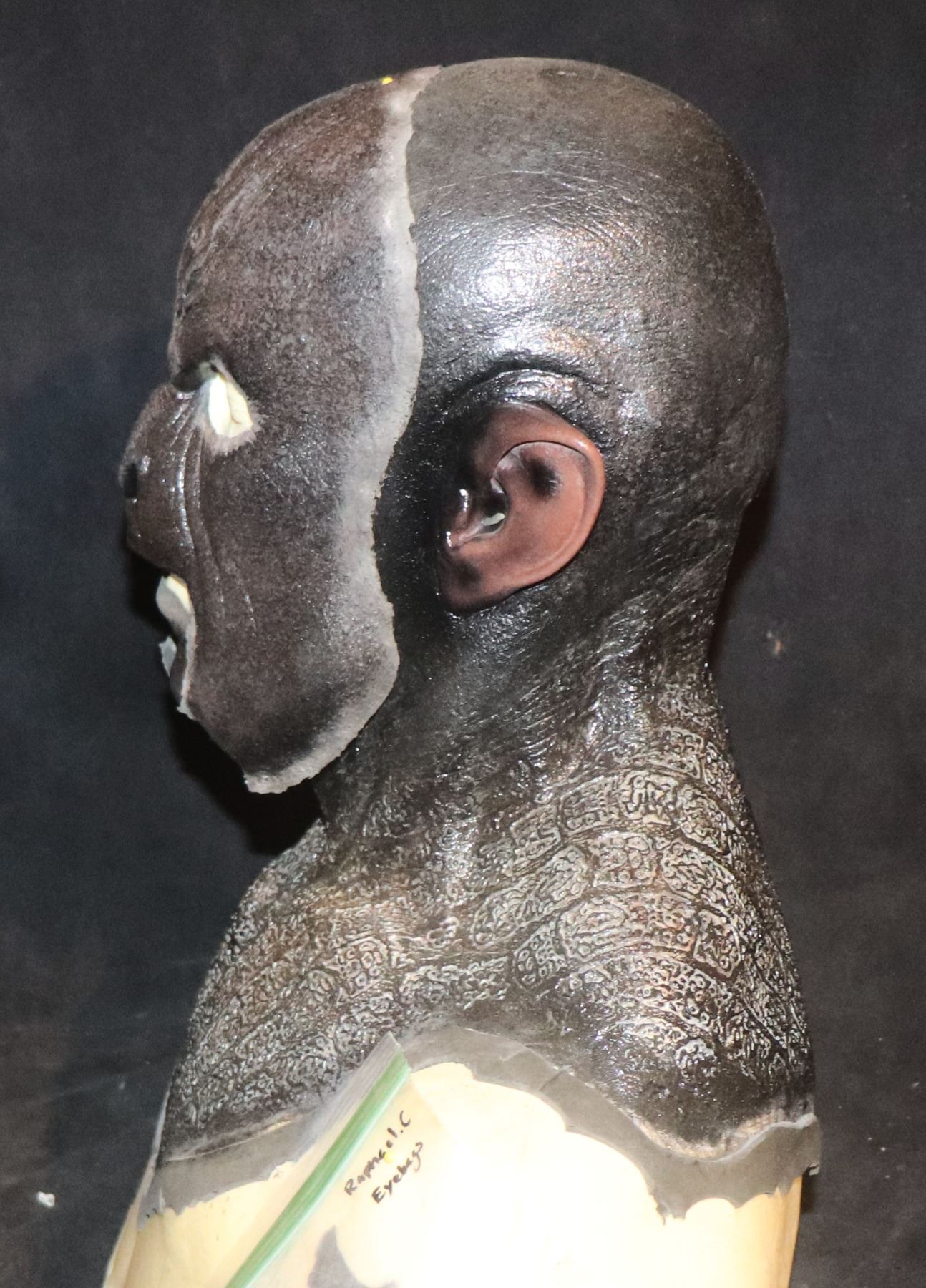 ALIEN ORC COWL AND FACIAL APPLIANCES ON LIFE CAST BUST!