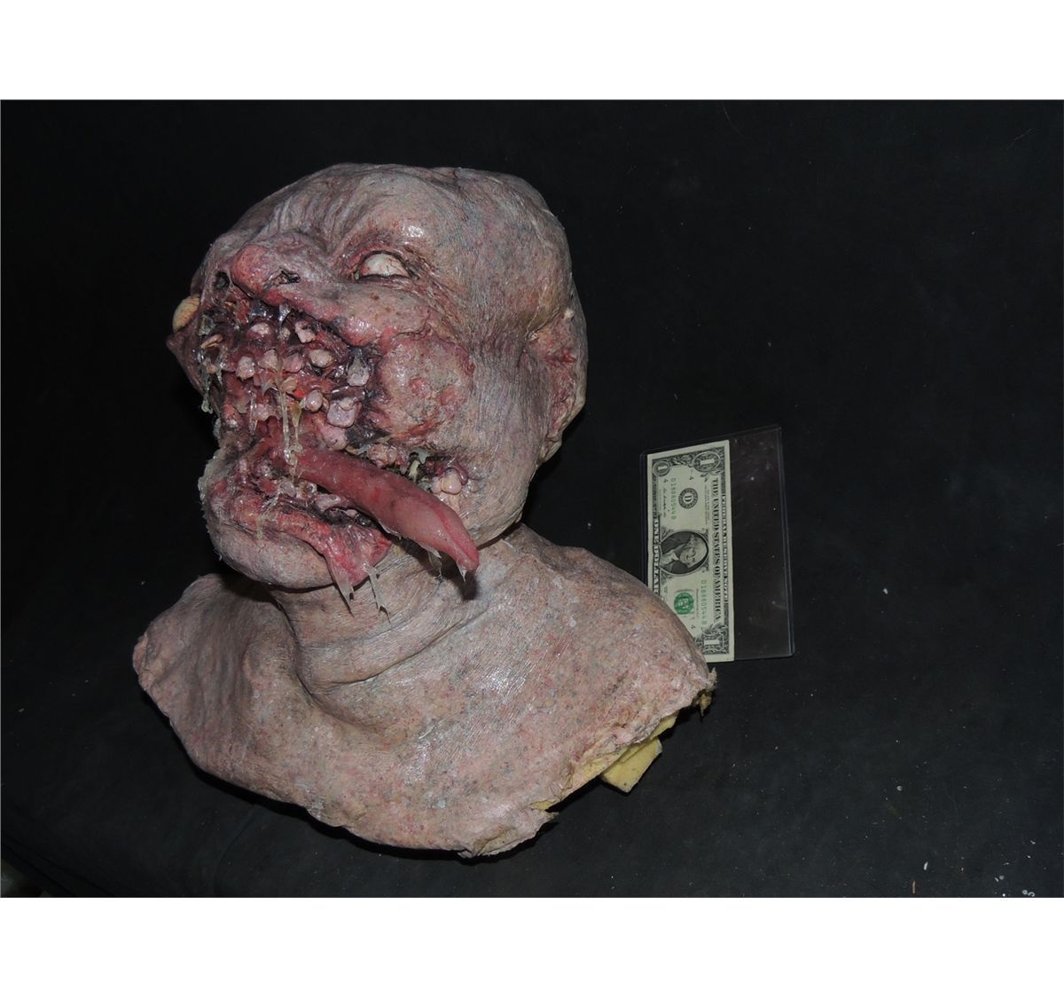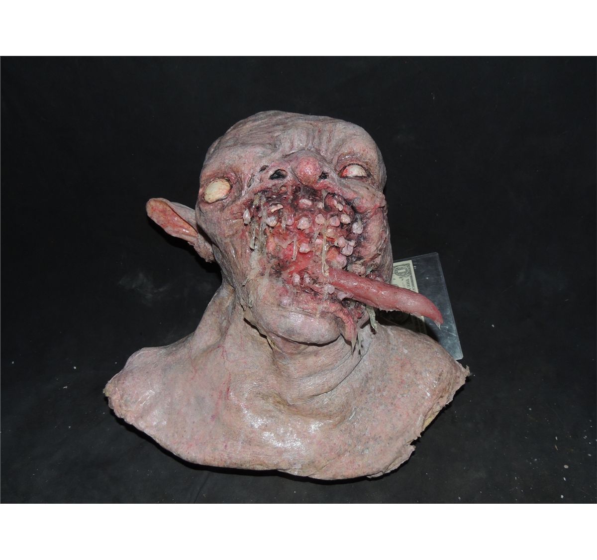This is a very cool OOAK head that looks like a rabid Alien Ork Mutant. It has one large ear, a silicone tongue, and a mouthful of teeth.