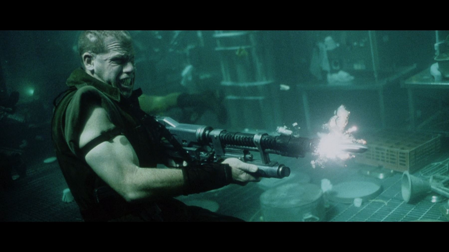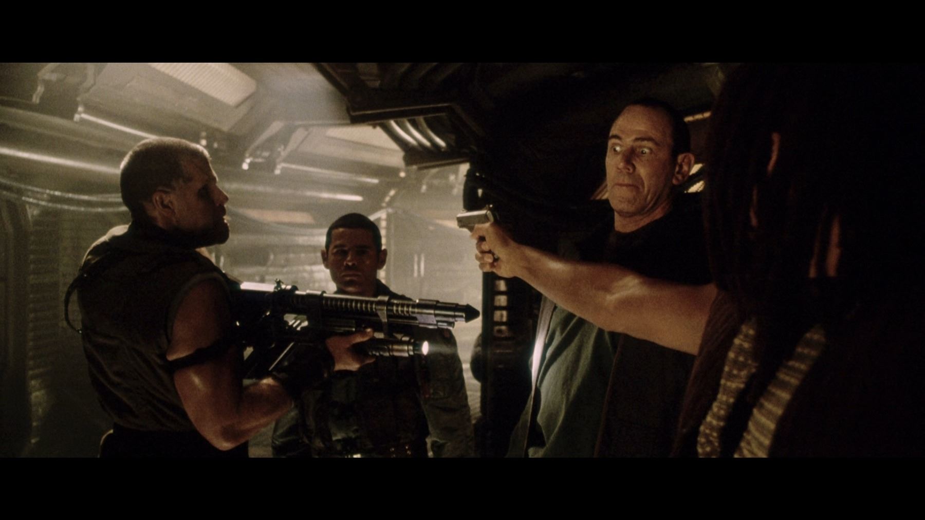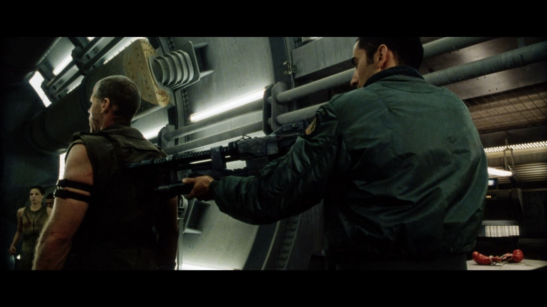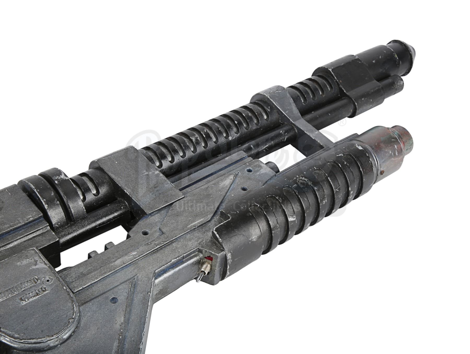 A light-up AR-2 rifle from Jean-Pierre Jeunet's sci-fi sequel Alien Resurrection. AR-2 rifles were carried by Marines aboard the USM Auriga, and then picked up by the crew of the Betty after the xenomorphs escaped. The rifle has three firing modes in the film: assault rifle, flamethrower and grenade launcher. Ripley (Sigourney Weaver) used the flamethrower function to destroy her seven previous failed clones.