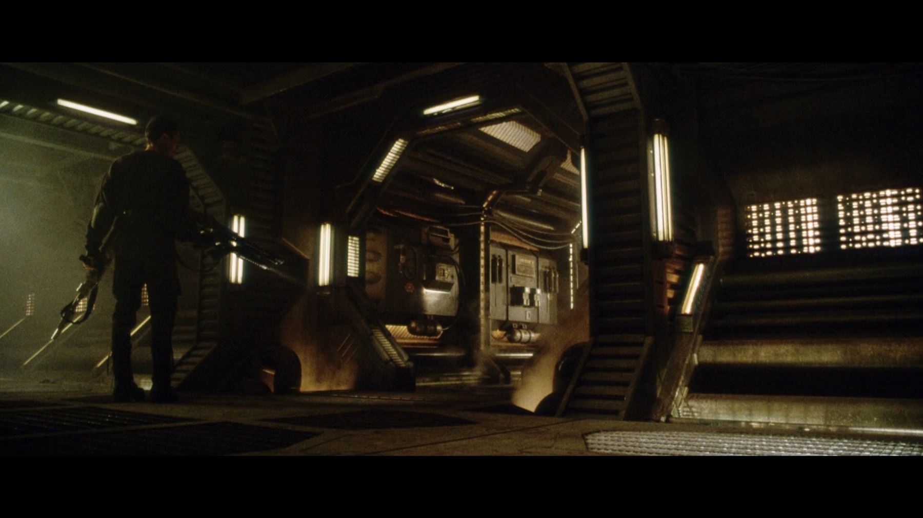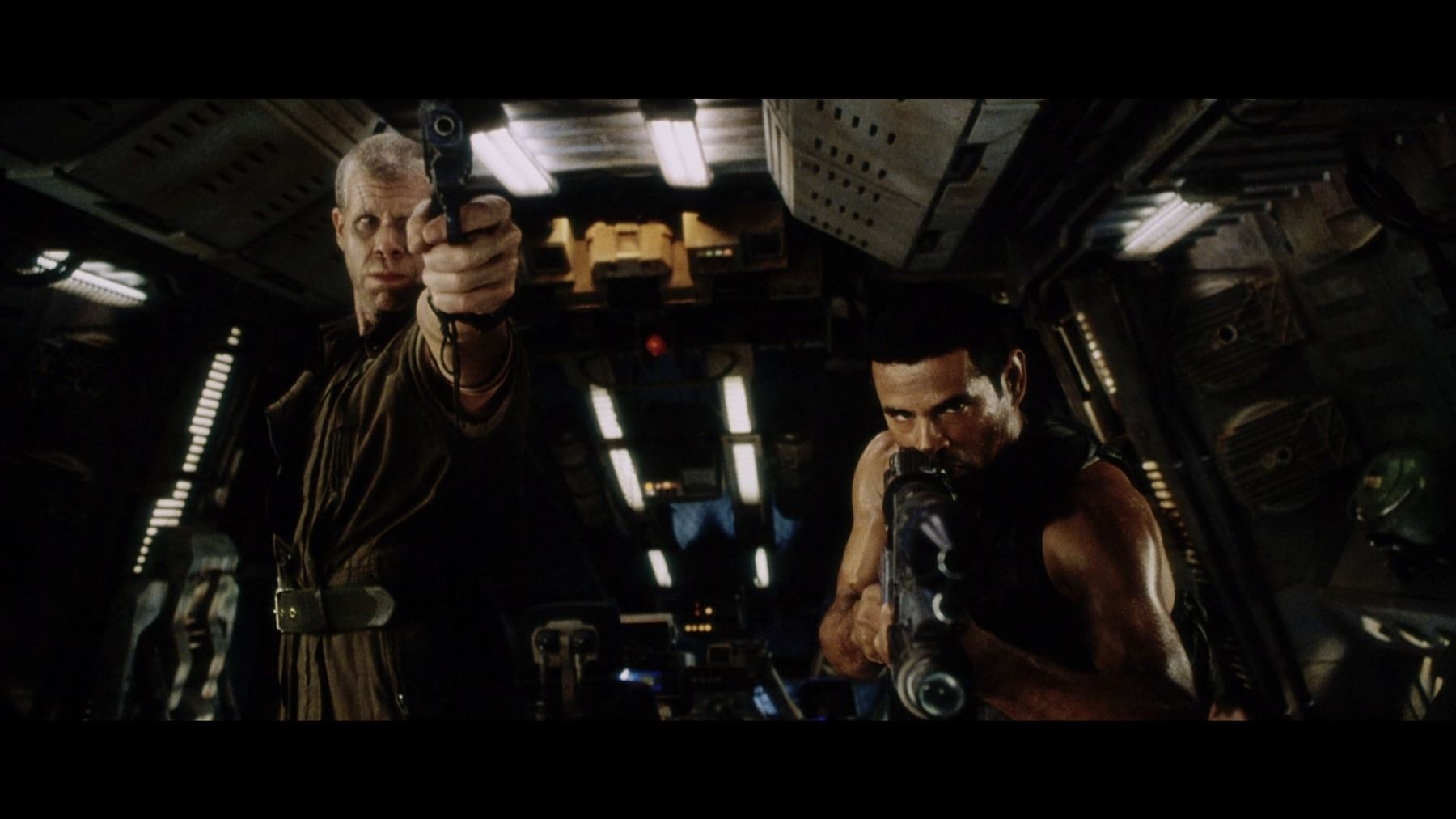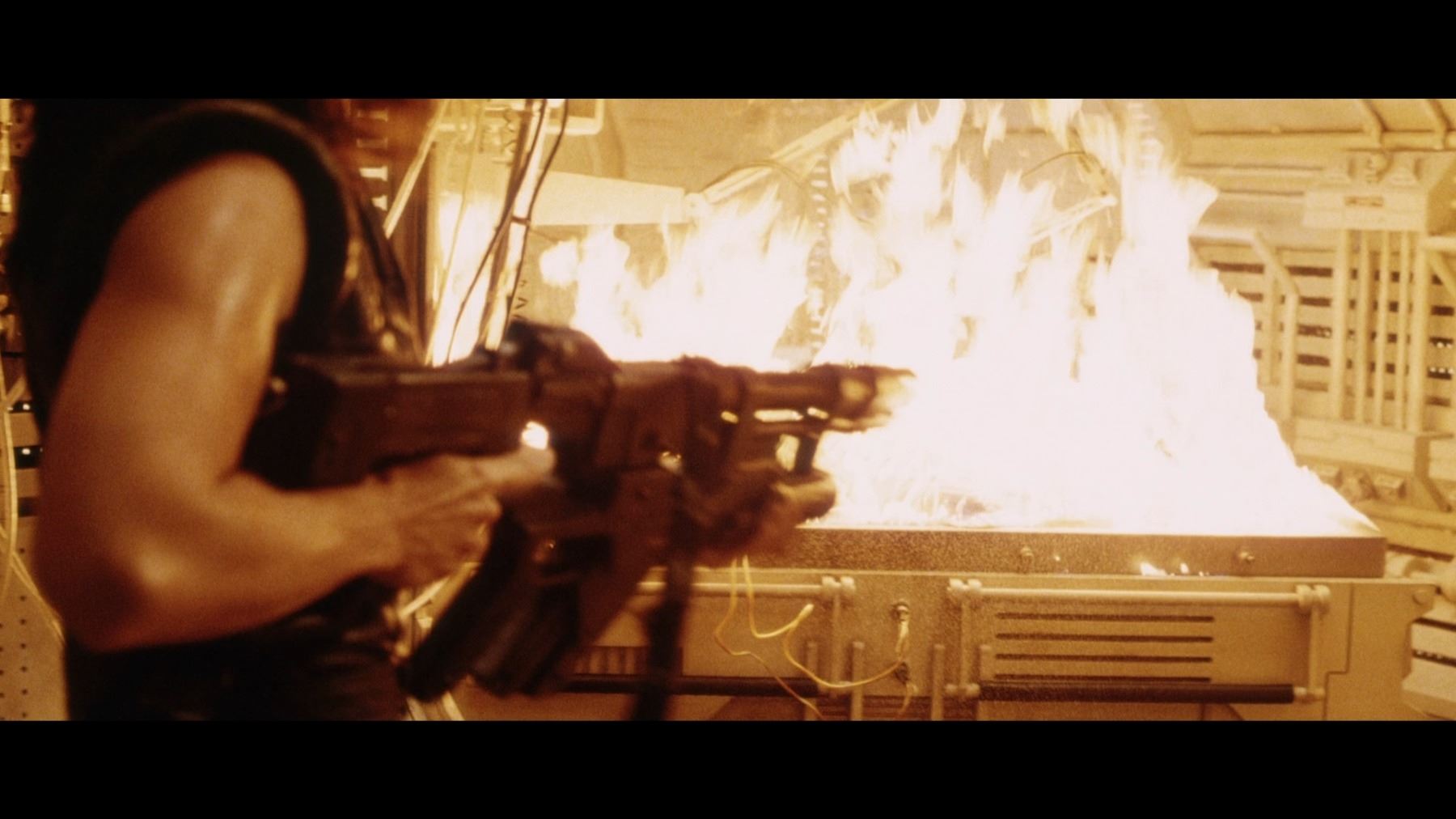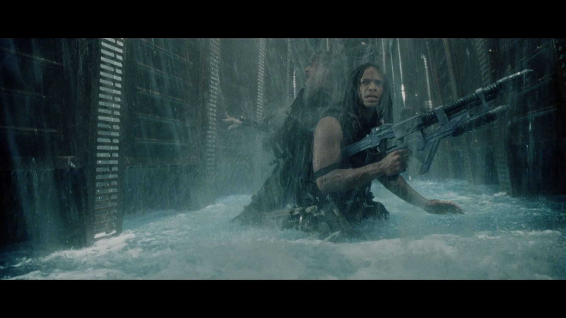 A light-up AR-2 rifle from Jean-Pierre Jeunet's sci-fi sequel Alien Resurrection. AR-2 rifles were carried by Marines aboard the USM Auriga, and then picked up by the crew of the Betty after the xenomorphs escaped. The rifle has three firing modes in the film: assault rifle, flamethrower and grenade launcher. Ripley (Sigourney Weaver) used the flamethrower function to destroy her seven previous failed clones.