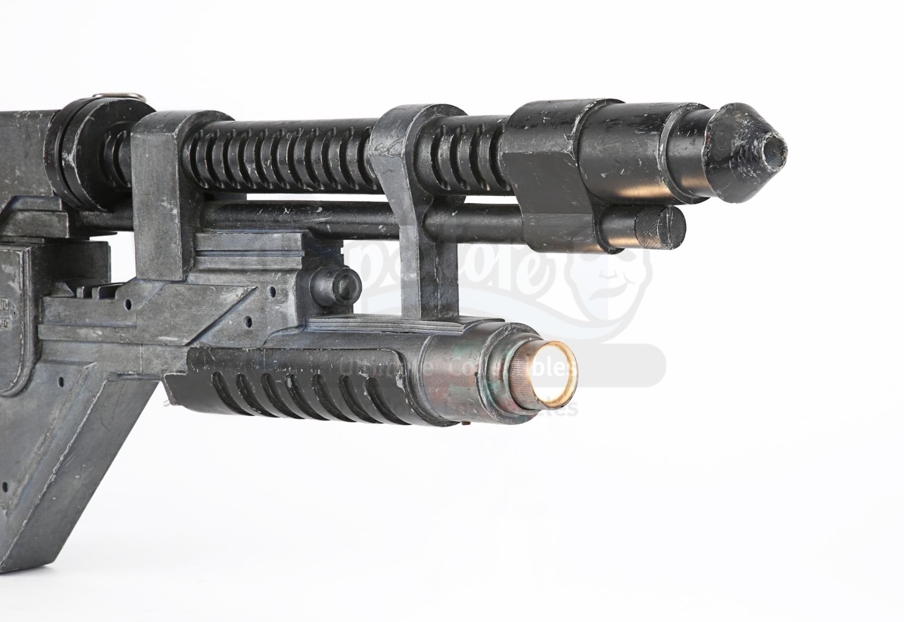 11.2. In the catalogue descriptions, Prop Store takes steps to identify and provide provenance for Lots offered at auction. In many cases, the Lots offered were used in or in conjunction with motion pictures or other programmes and information is furnished in order to fully identify and describe the Lot offered at Auction, including photographs and illustrations. Prop Store in no way claims any connection to or relationship with the producers of the motion picture or other programme. In all cases, the use of the titles or other elements of a motion picture or other programme is for informational purposes only.