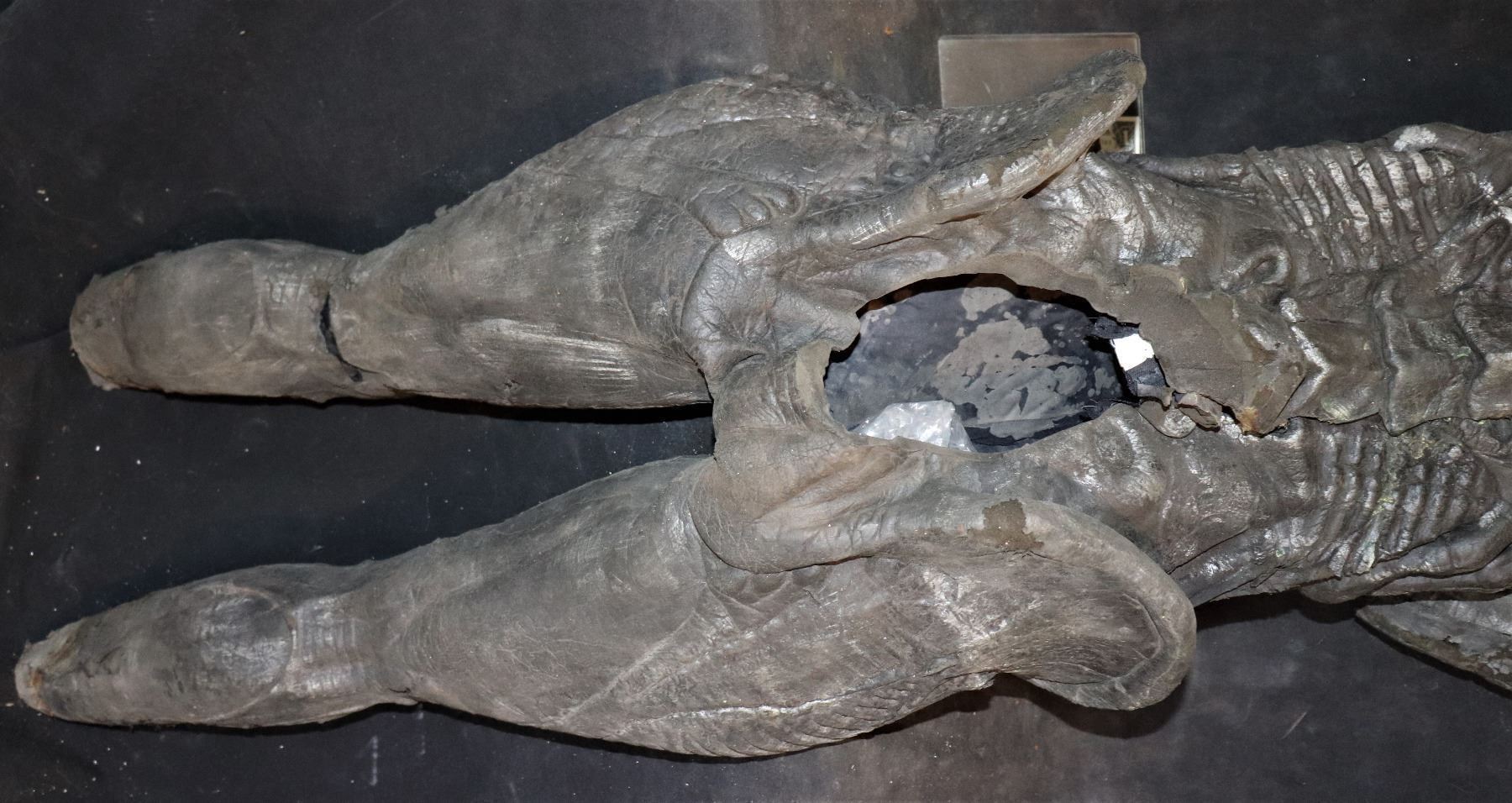 I assume this suit got butchered for a death shot, or to repair another suit. Missing arm and chest area.