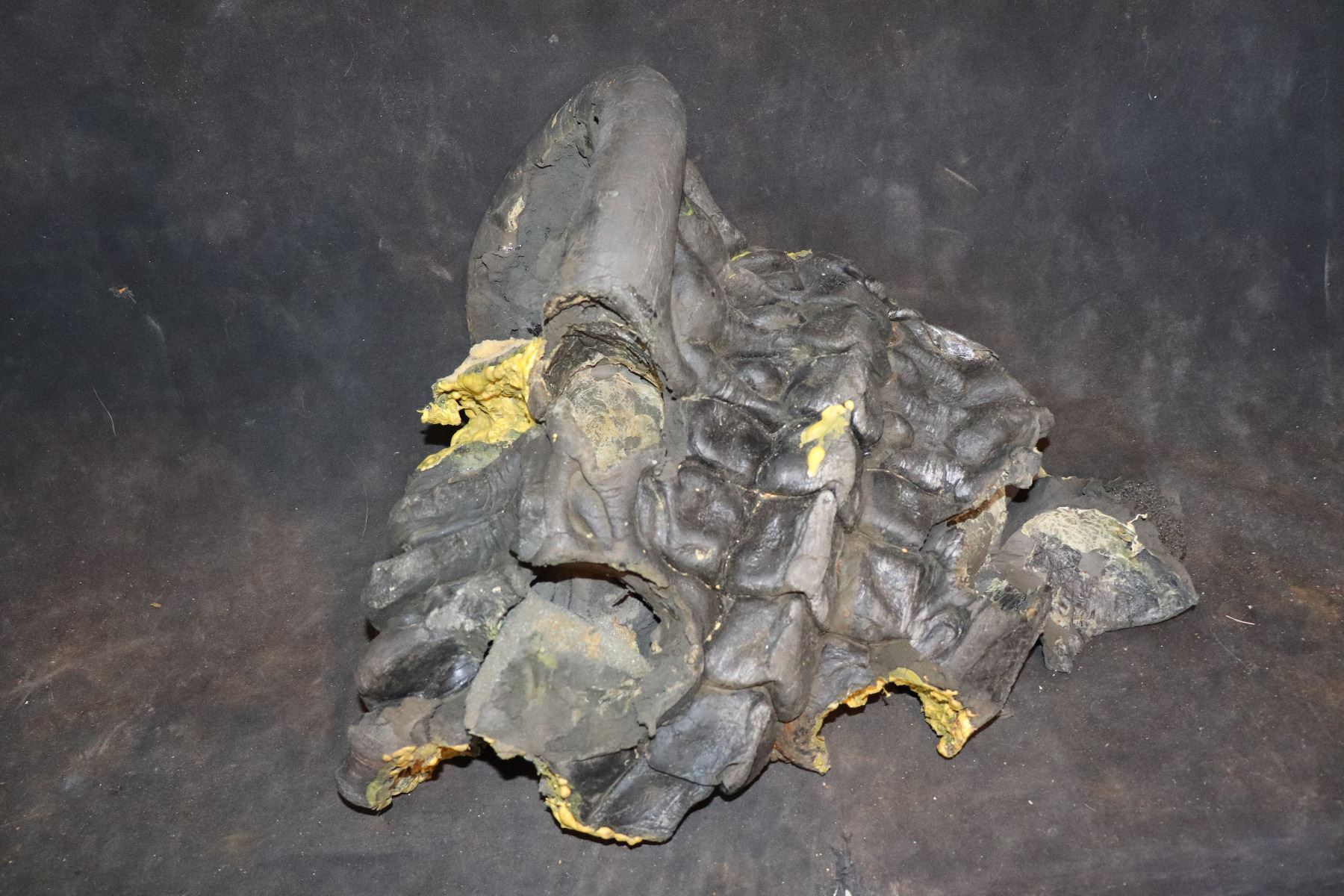 This is such a shame but it doesn't look like this because it is dried out. I believe this goes with the urethane lower half but the trajectories don't mate up. Made as a half suit to get blown apart.