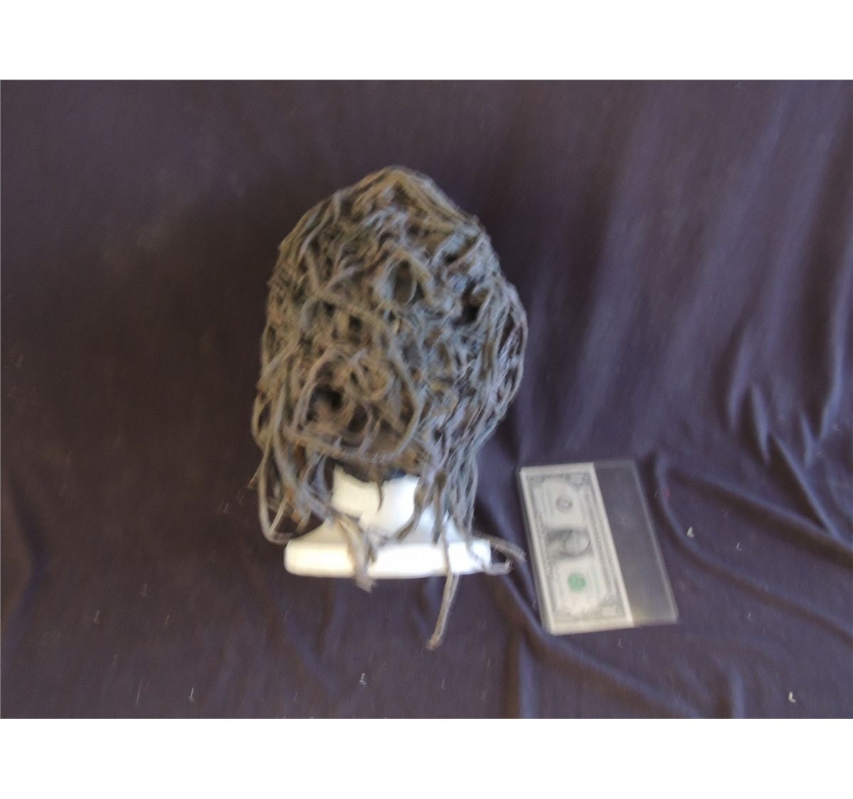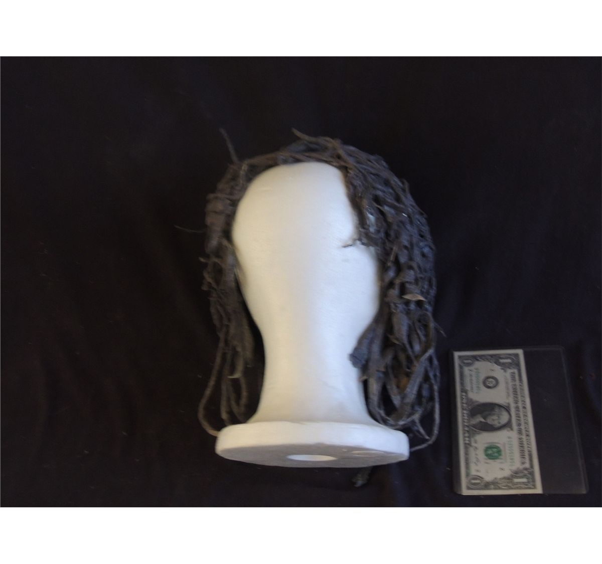 This is a OOAK near full head mask of what looks like worms. First image is of face, second is profile, and third is rear. Durable silicone I think? Made on an inner sock. Used in some British TV show.