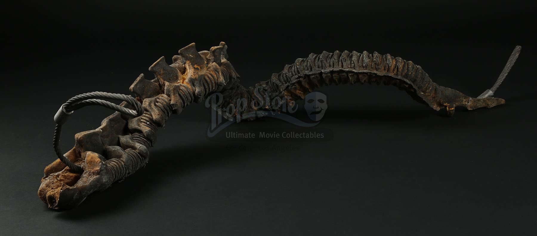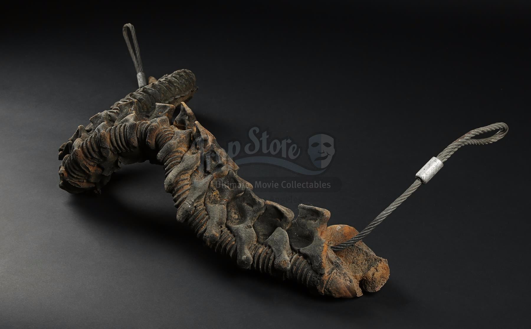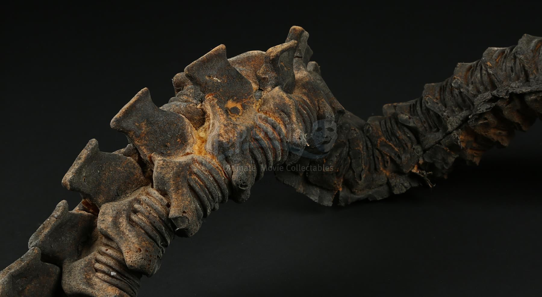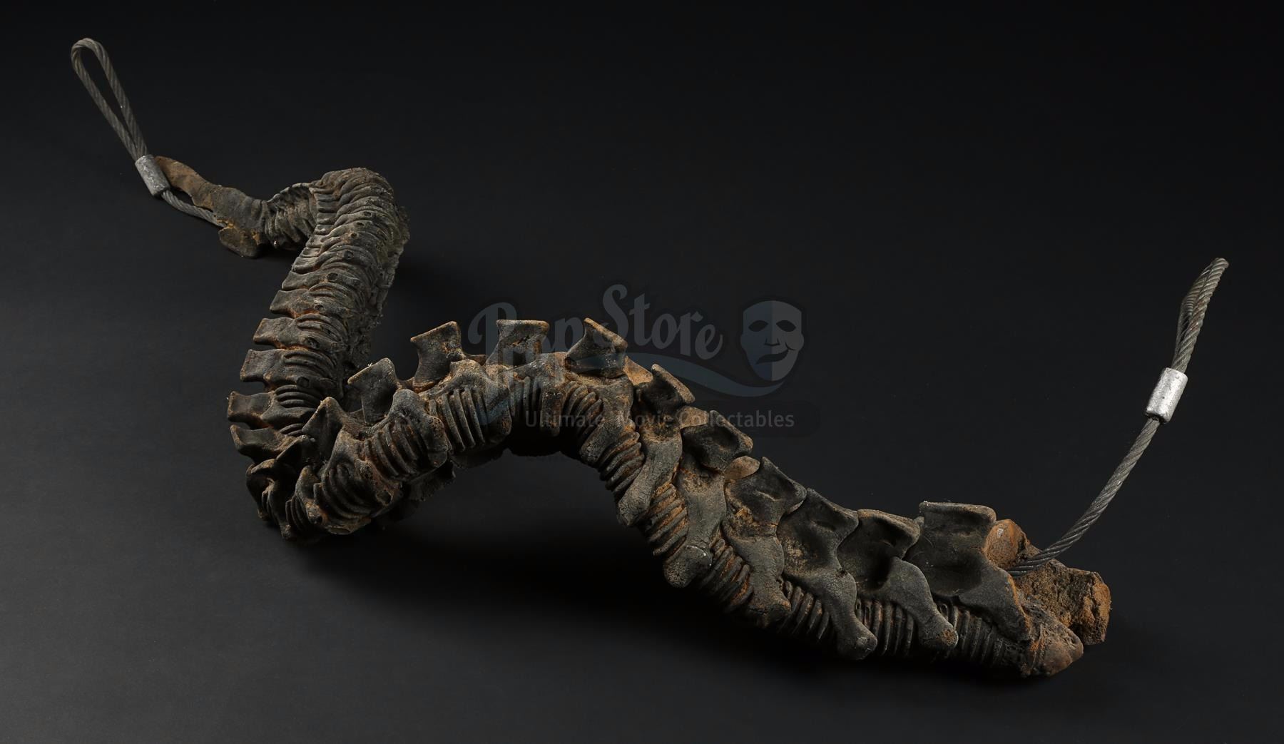 The tail is made from polyfoam that has been moulded into a sequence of vertebrae flowing from large to small, decorated in a shade of brown and taking the classic 'bio-machine' shape, as imagined by artist H.R. Giger. Threaded through the entire length, is a thick steel wire cord, which would have allowed the tail to support the weight of a performer for a special effect. There are small cracks, flaking paint and some small missing chunks from extensive production use. The cable has developed a curved 'S' shape through storage and rests in this position naturally. Dimensions: 132 cm x 22 cm x 16 cm (52'' x 8 1/2'' x 6 1/4'')