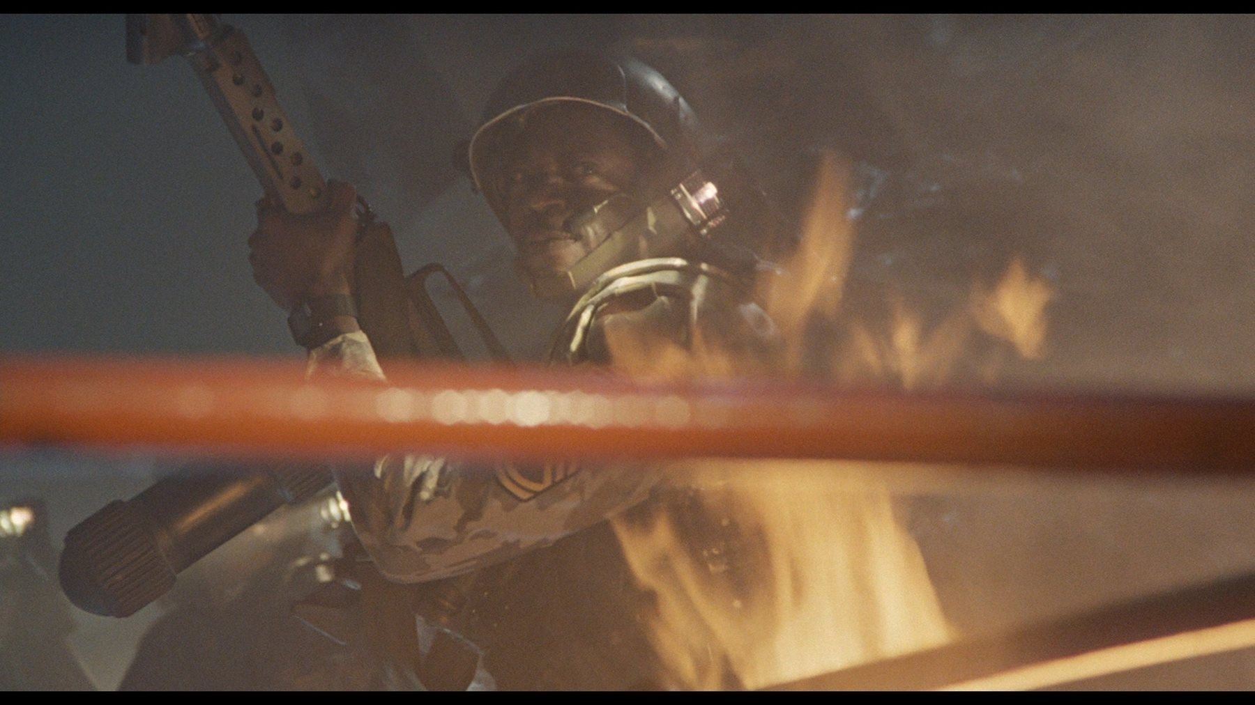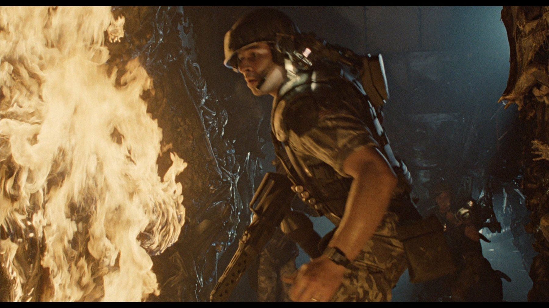A Colonial Marine Flamethrower from James Cameron’s 1986 sci-fi action sequel Aliens. Frost (Ricco Ross), Apone (Al Matthews), Dietrich (Cynthia Dale Scott) and Drake (Mark Rolston) carried M240 Incinerator Units during the base and hive exploration scenes. Ripley (Sigourney Weaver) also used a Pulse Rifle/flamethrower combination she constructed aboard Dropship 2, after being rescued by Bishop (Lance Henriksen) en route to the hive when rescuing Newt (Carrie Henn). Interestingly, Ross stated his character was ironically named Frost by Cameron, given his accidental death by Dietrich’s flamethrower.