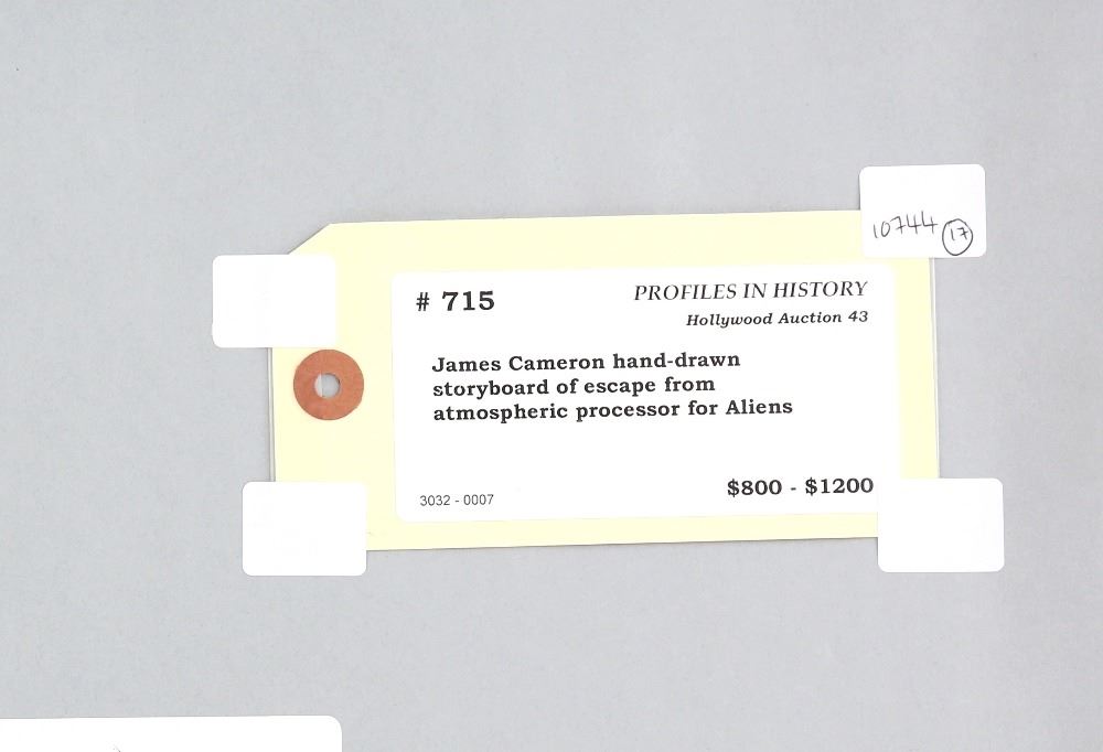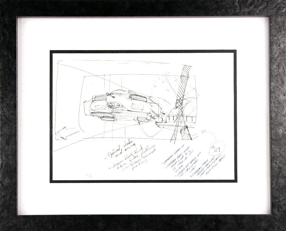 ALIENS (1986) James Cameron hand drawn storyboard sketch in pen of an atmospheric processor from the movie, framed, overall 15 x 18.5 inches.Provenance: With copy of the original invoice and Auction Tag from Profiles In History. Lot 715 Auction 43..