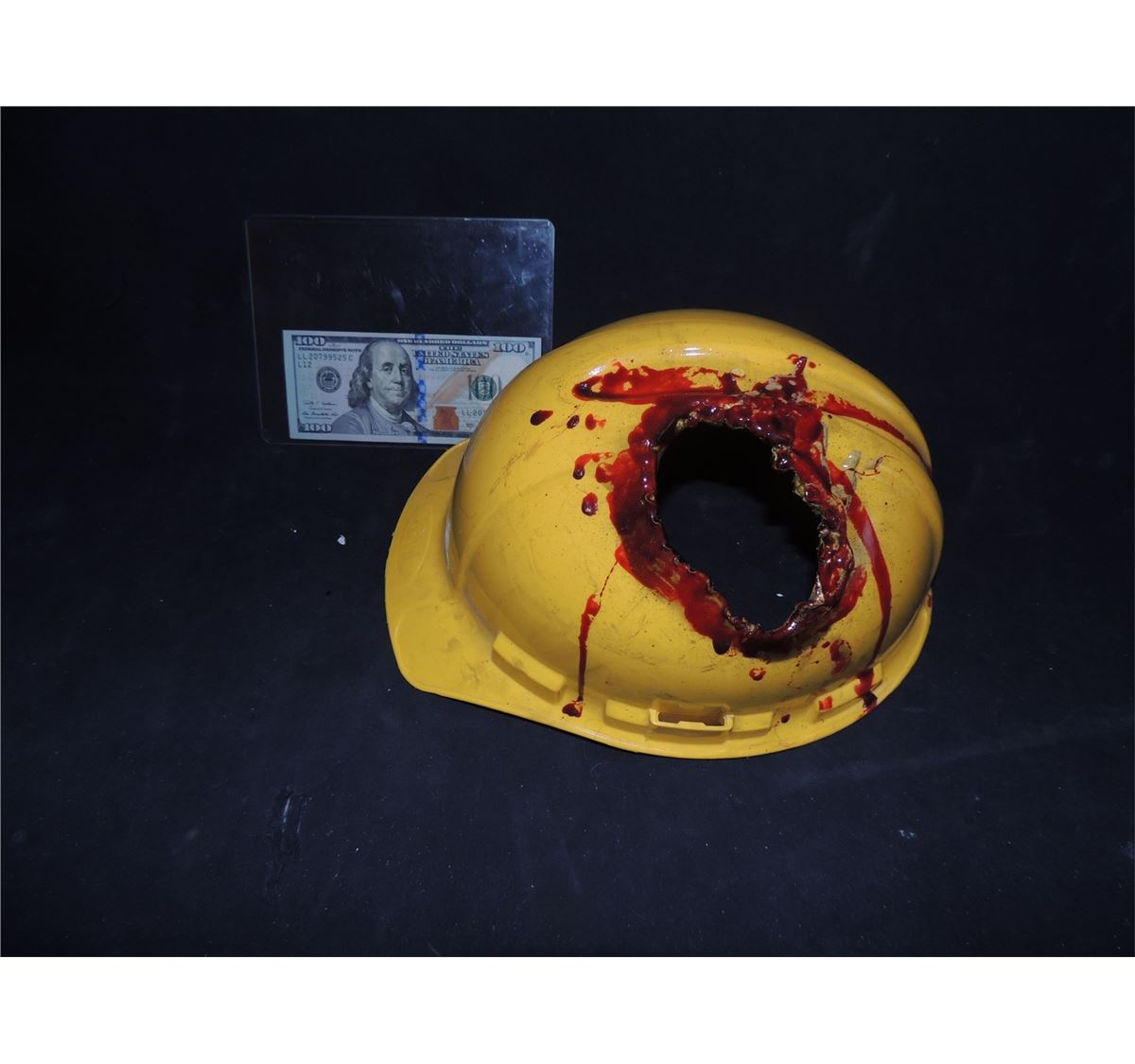 This is a hard hat screen used in either ALIENS or AVP REQUIEM ! It has incredibly cool battle damage from an alien jaw bursting through it.